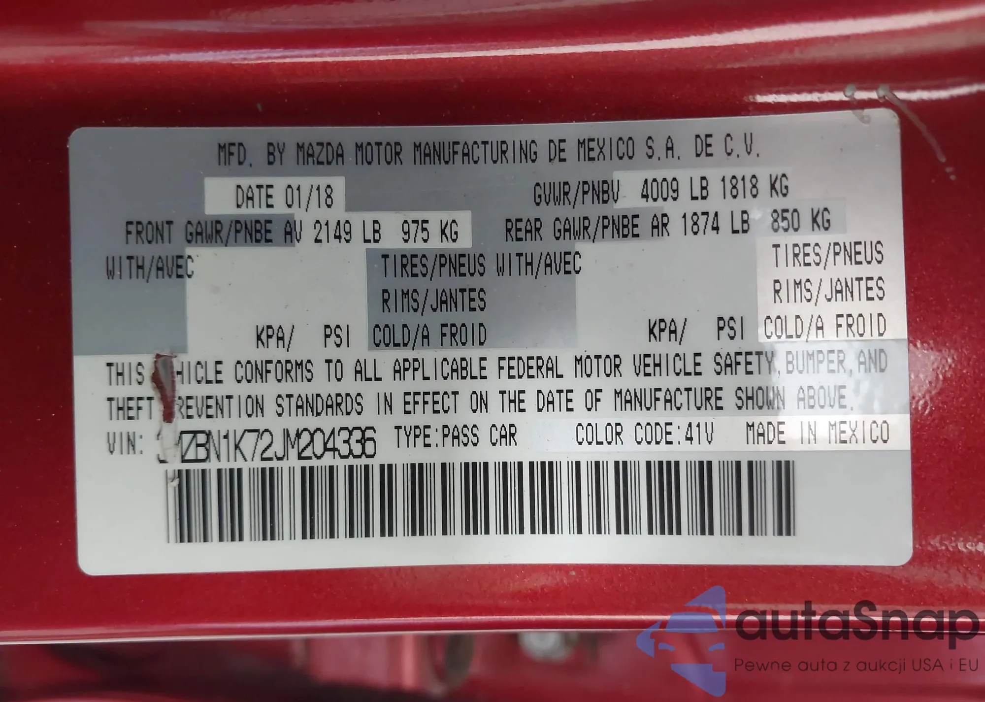 LOT: 42112500 VIN: JM1BK32F871685519