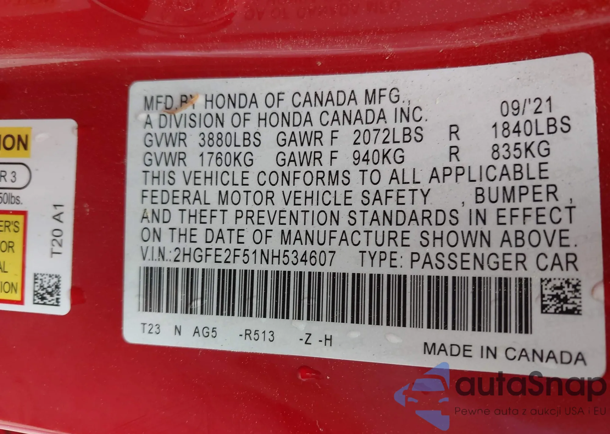 • VIN 2HGFE2F51NH534607