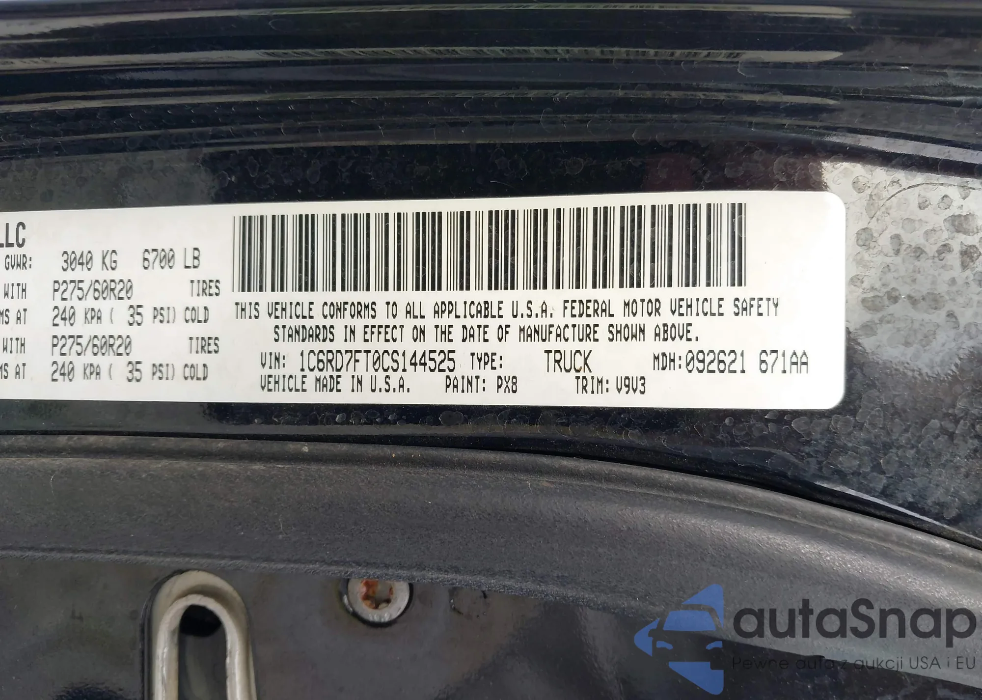 • VIN 1C6RD7FT0CS144525