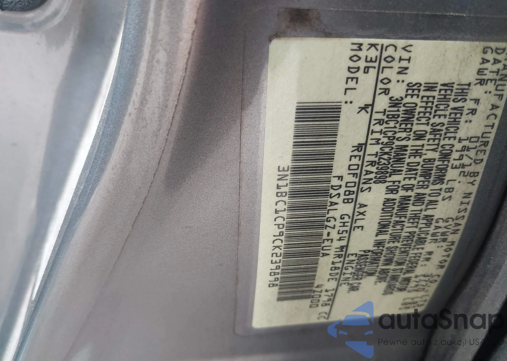 LOT: 42210704 VIN: 3N1BC1CP9CK239898