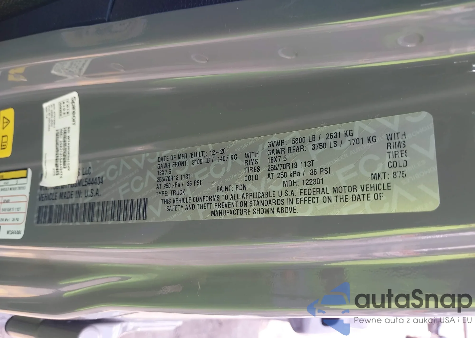 LOT: 41919704 VIN: 1C6SRFFT4MN567699