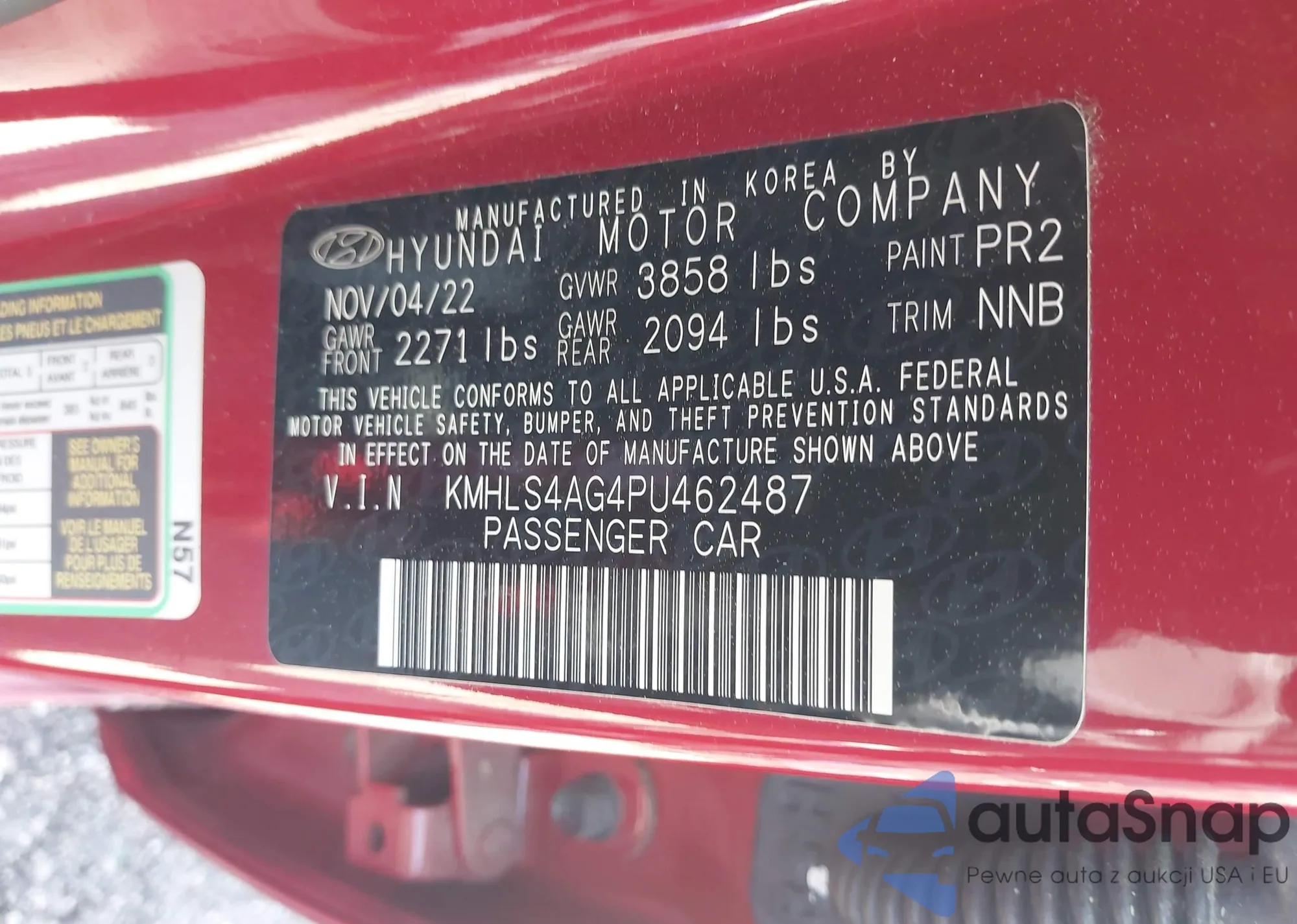 LOT: 41978250 VIN: KMHLS4AG4PU462487