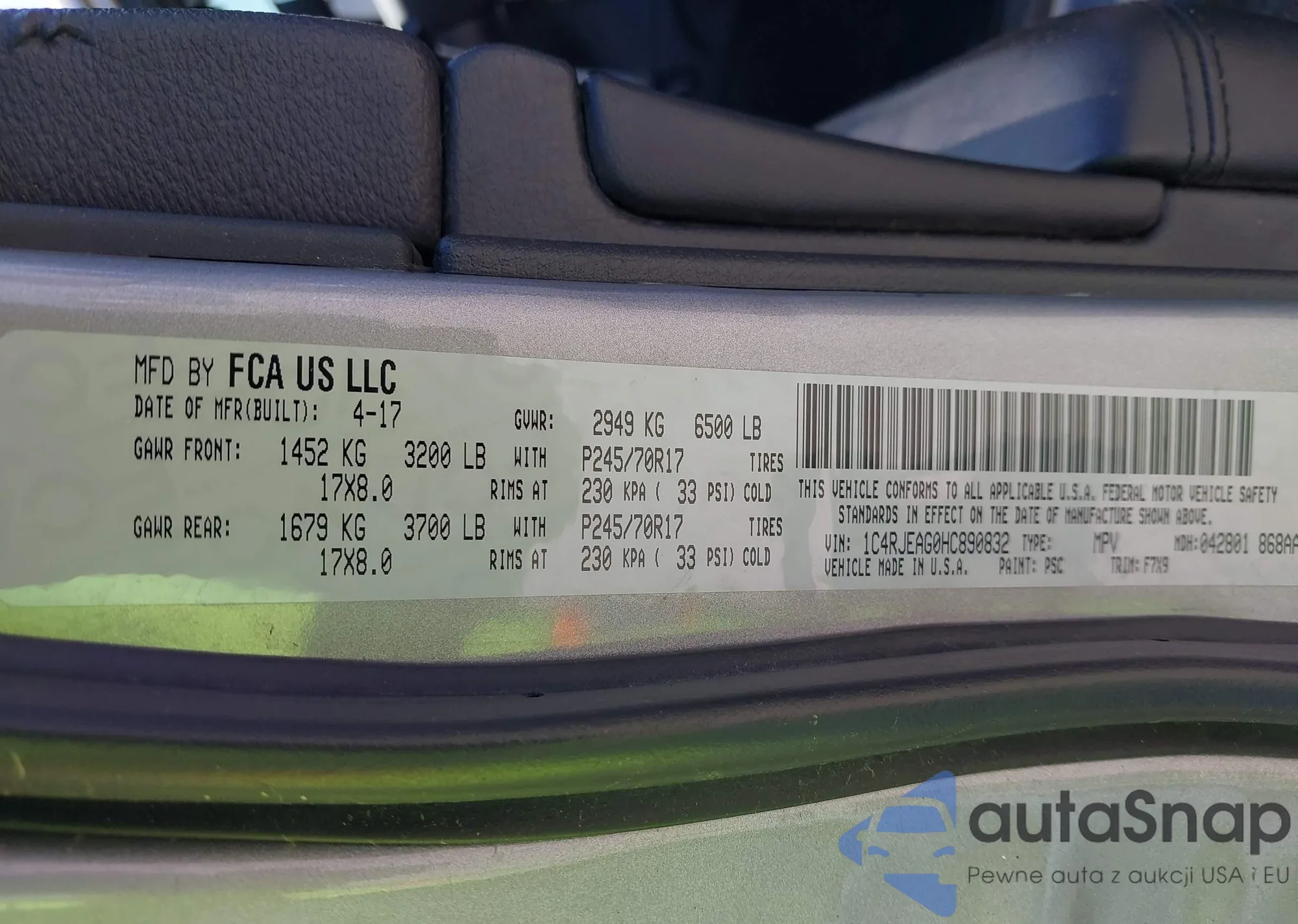 • VIN 1C4RJEAG0HC890832