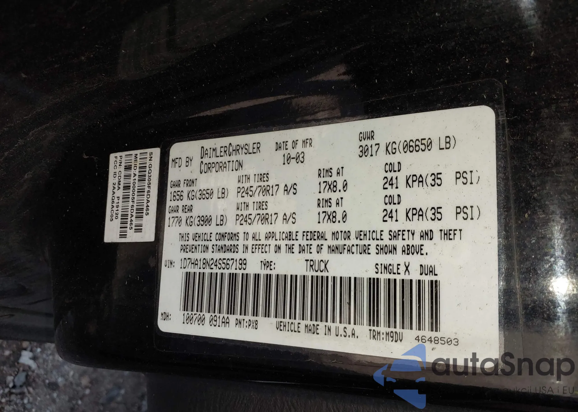 LOT: 42163930 VIN: 1D7HA18N24S567199