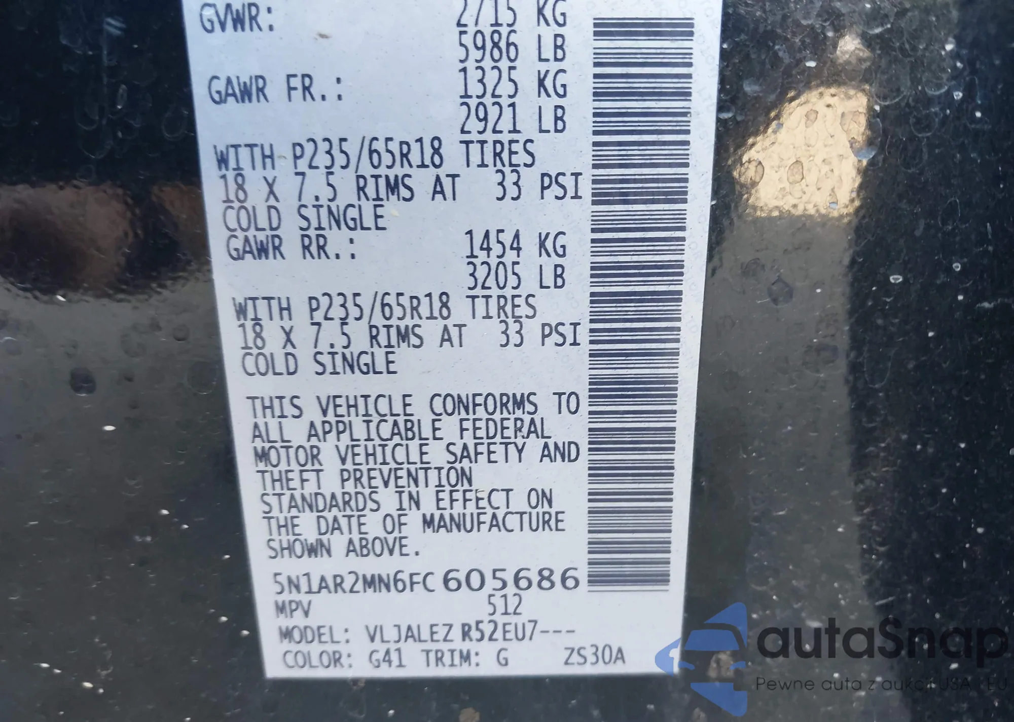 LOT: 42164761 VIN: 5N1AR2MN6FC605686