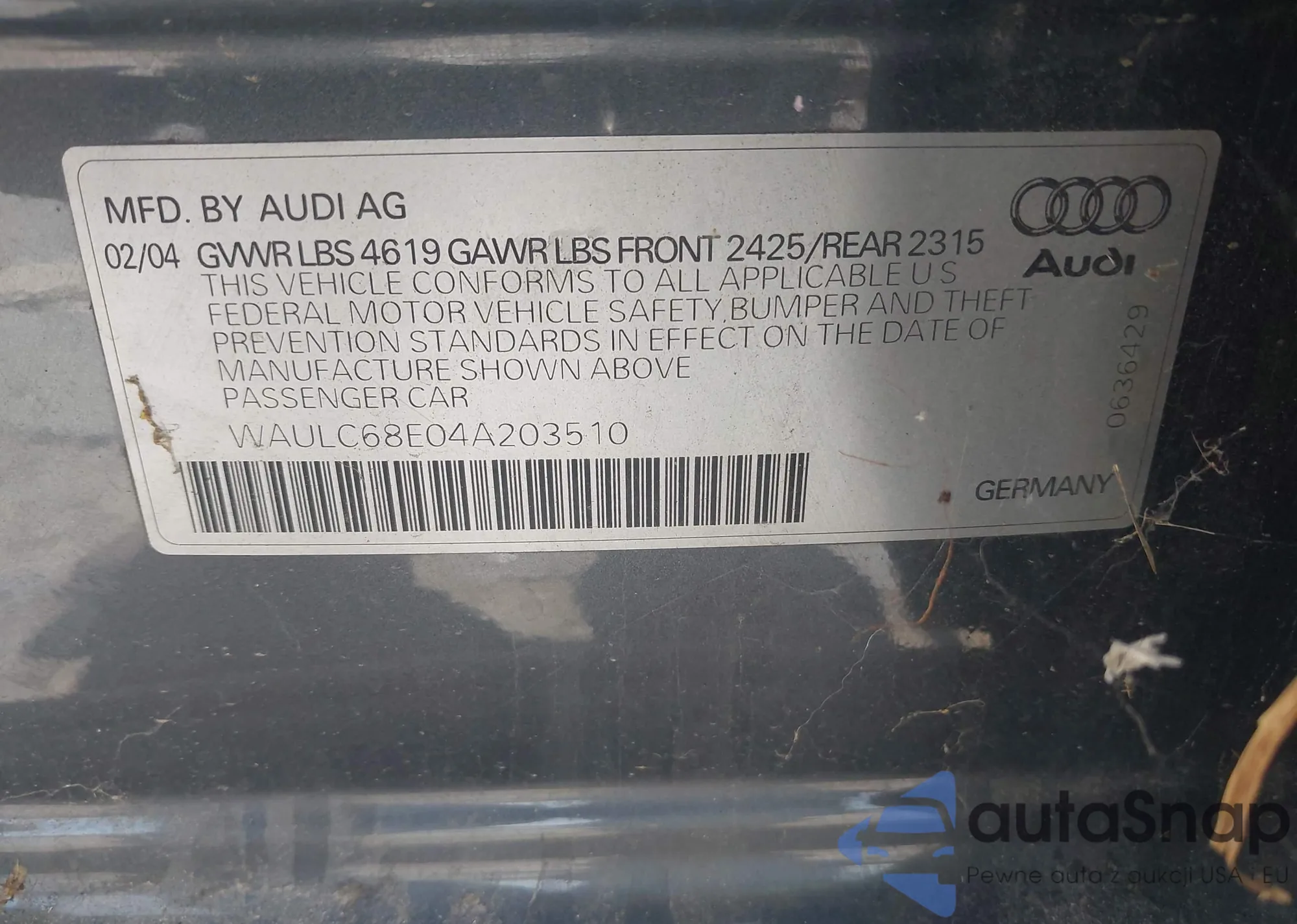 • VIN WAULC68E04A203510