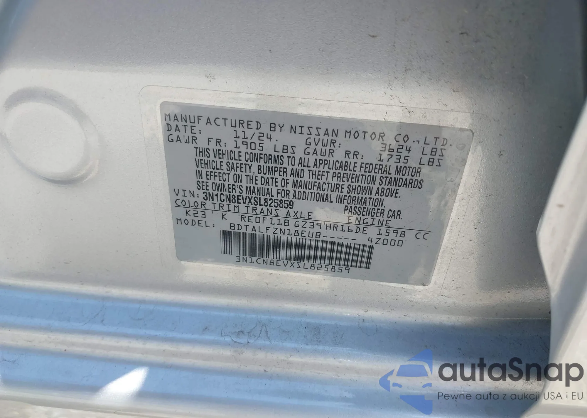 • VIN 3N1CN8EVXSL825859