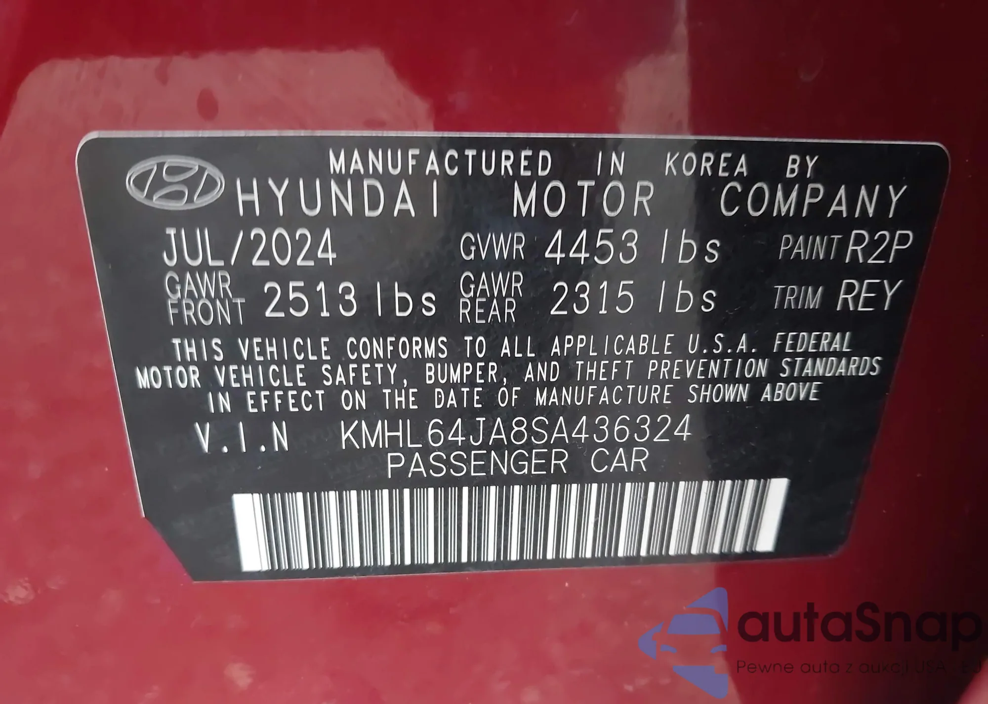 LOT: 42391502 VIN: KMHL64JA8SA436324