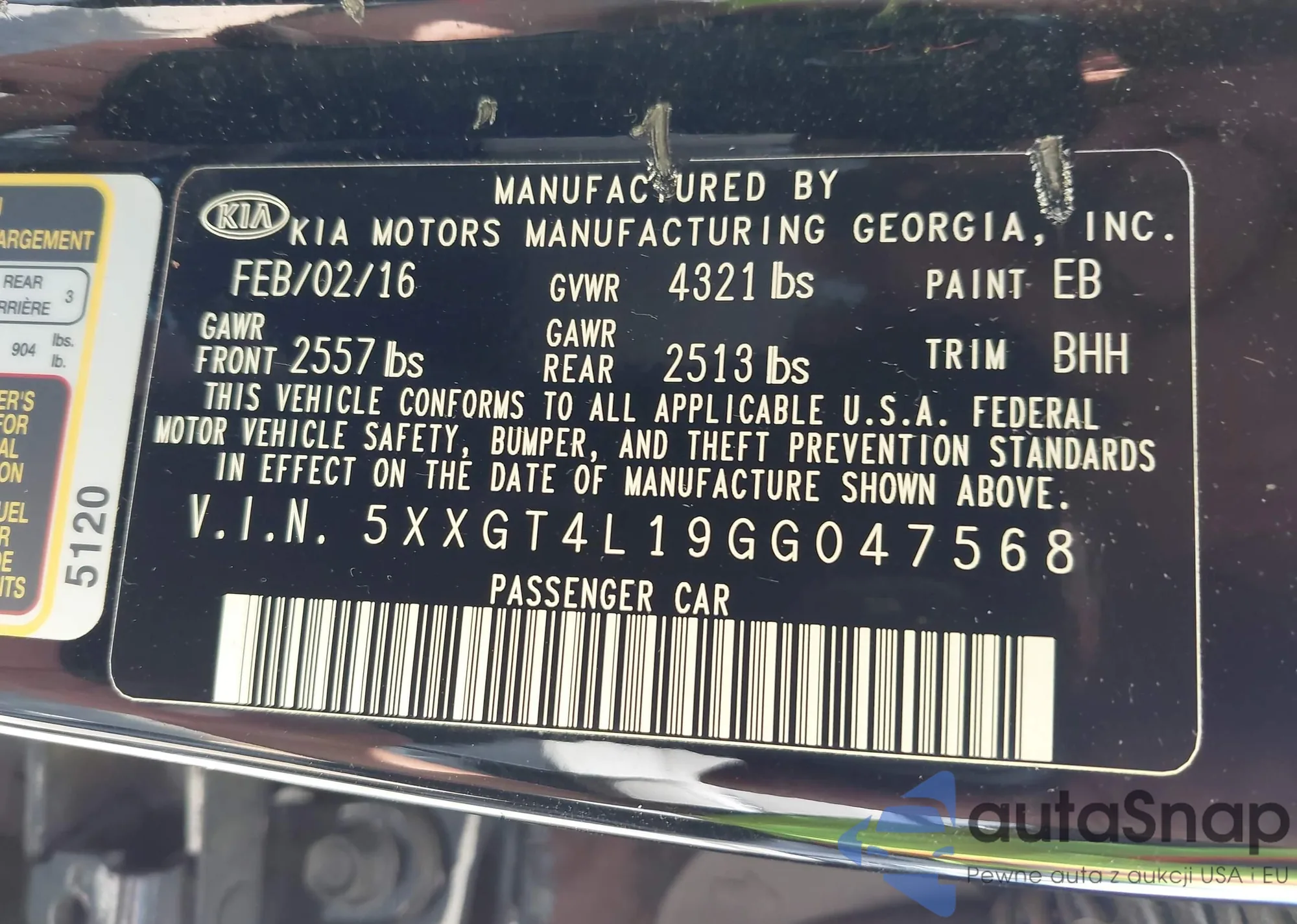 • VIN 5XXGT4L19GG047568