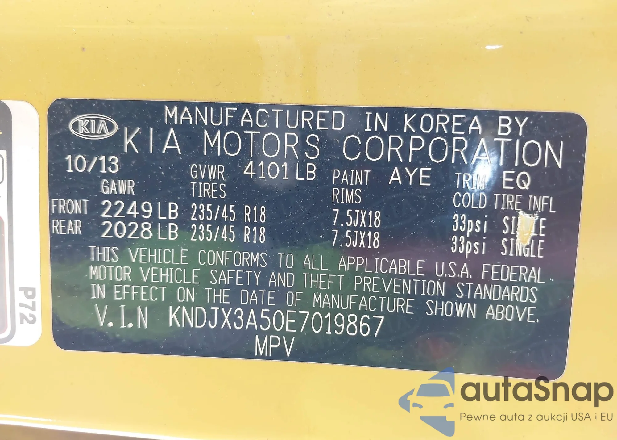 LOT: 42283850 VIN: KNDJX3A50E7019867
