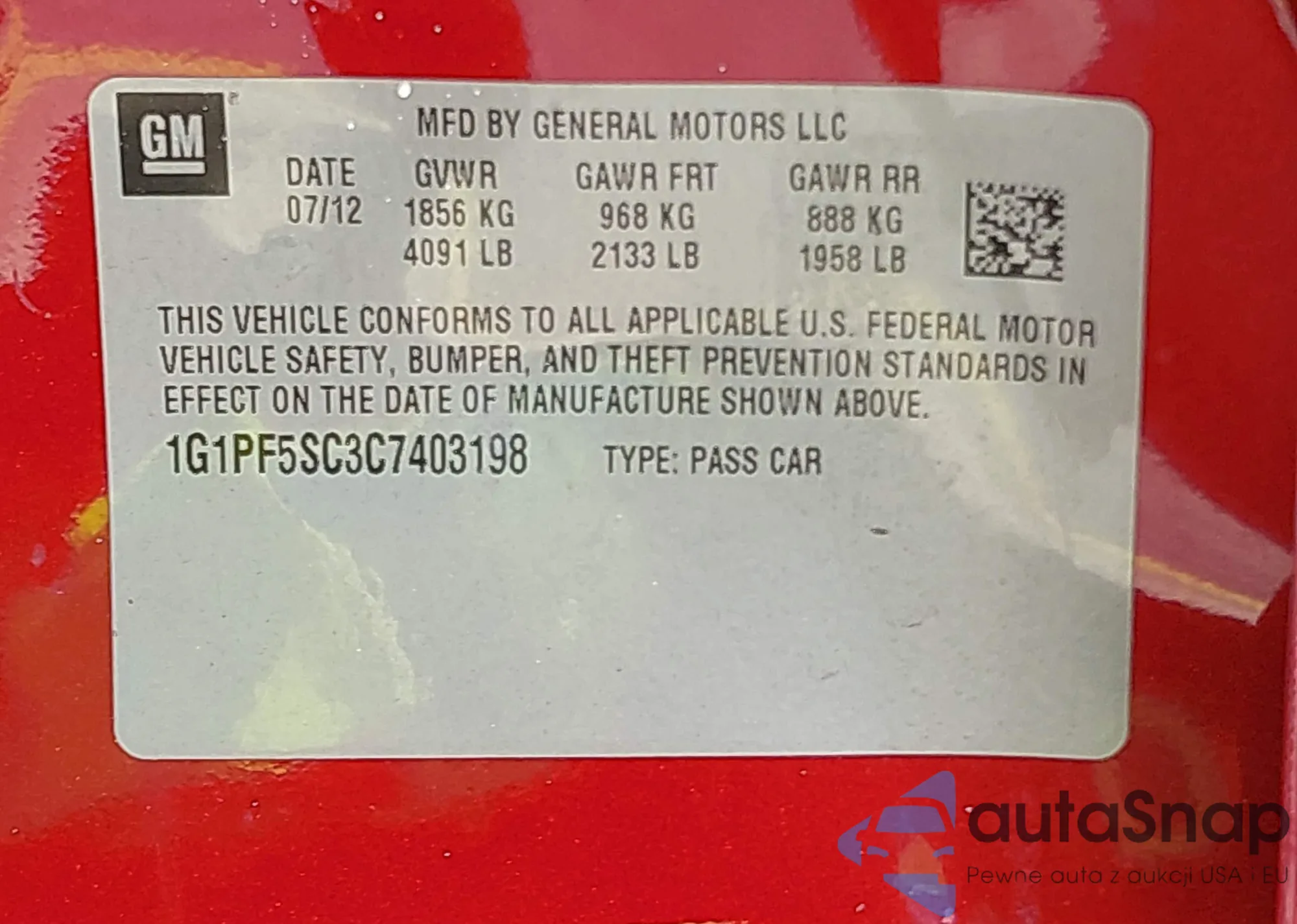 LOT: 42167856 VIN: 1G1PF5SC3C7403198
