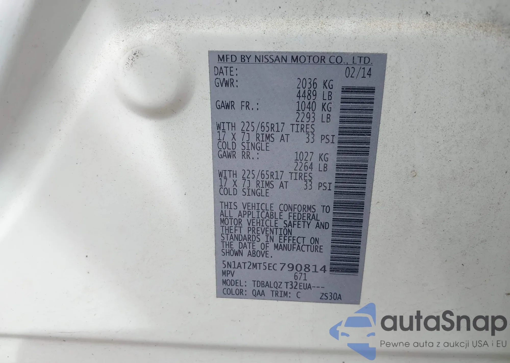 • VIN 5N1AT2MT5EC790814