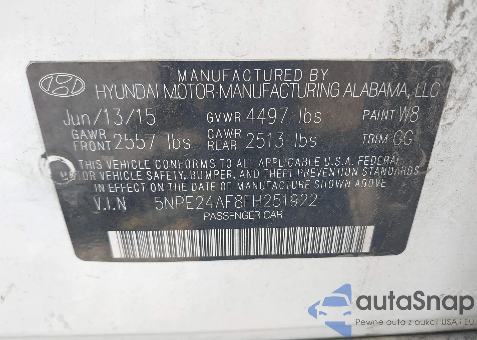 • VIN 5NPE24AF8FH251922