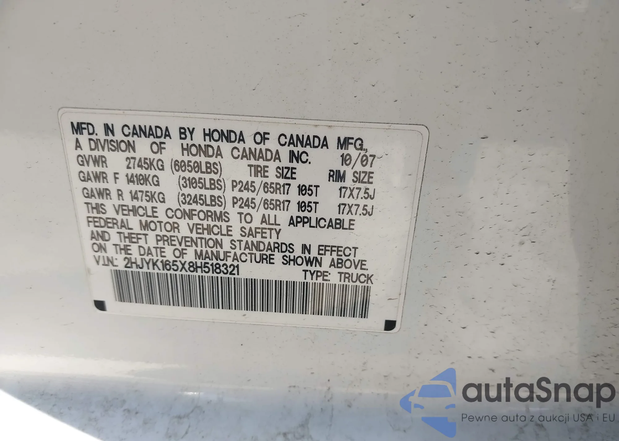 • VIN 2HJYK165X8H518321