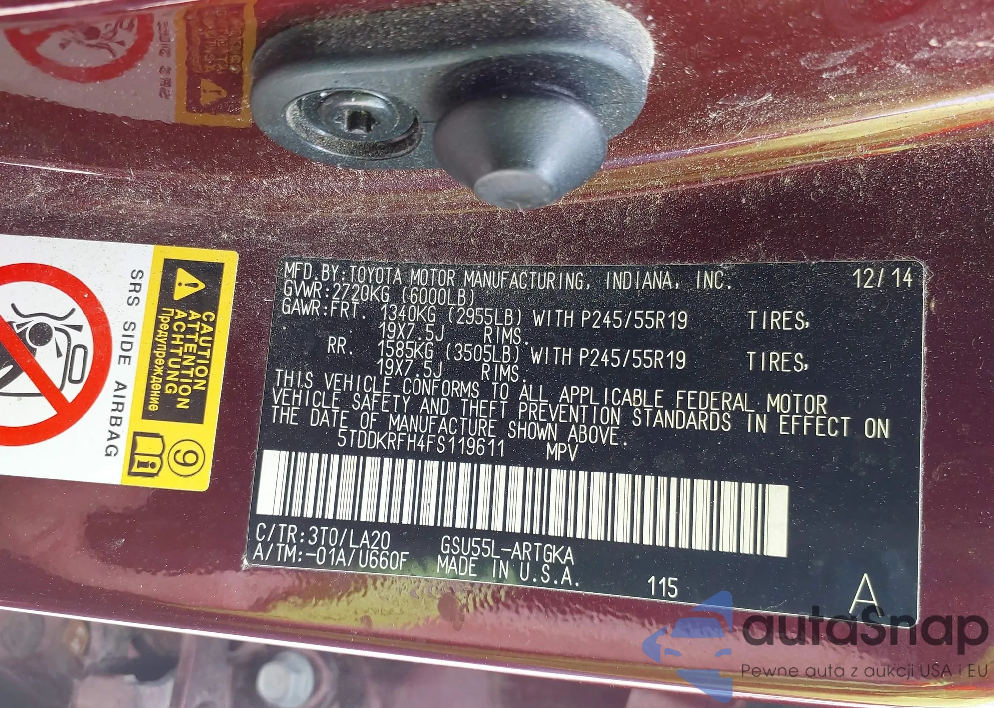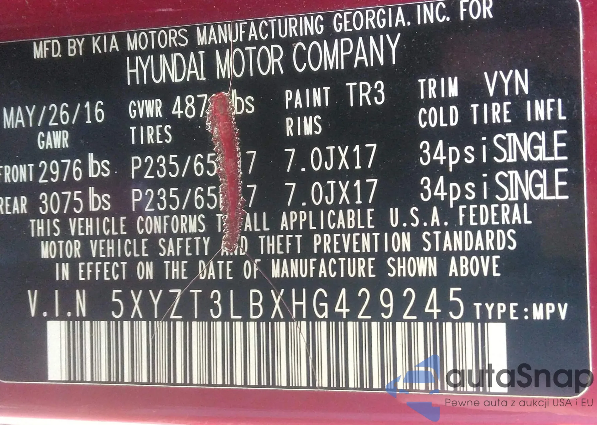 • VIN 5XYZT3LBXHG429245