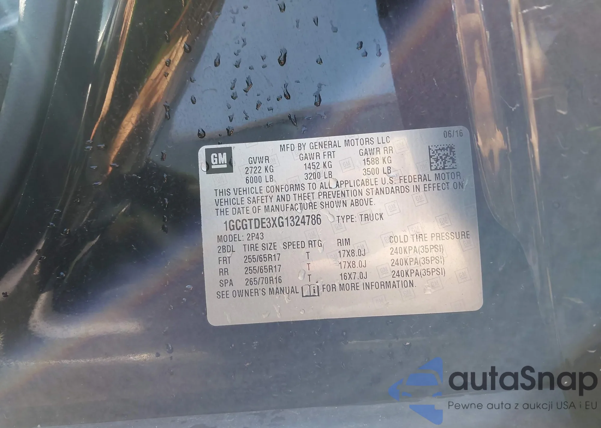 LOT: 41909611 VIN: 1GCGTDE3XG1324786
