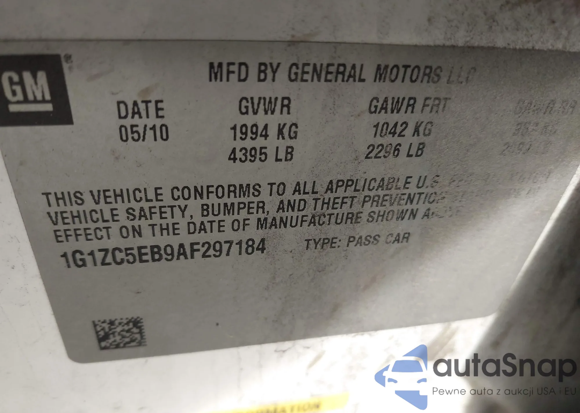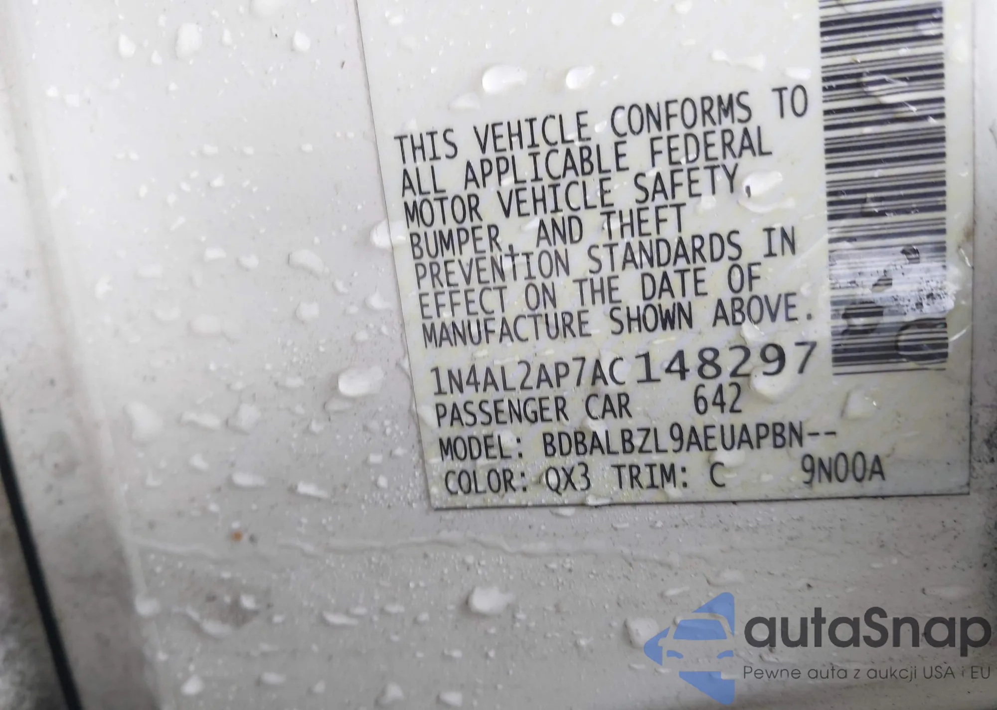 LOT: 42322493 VIN: 1N4AL2AP7AC148297