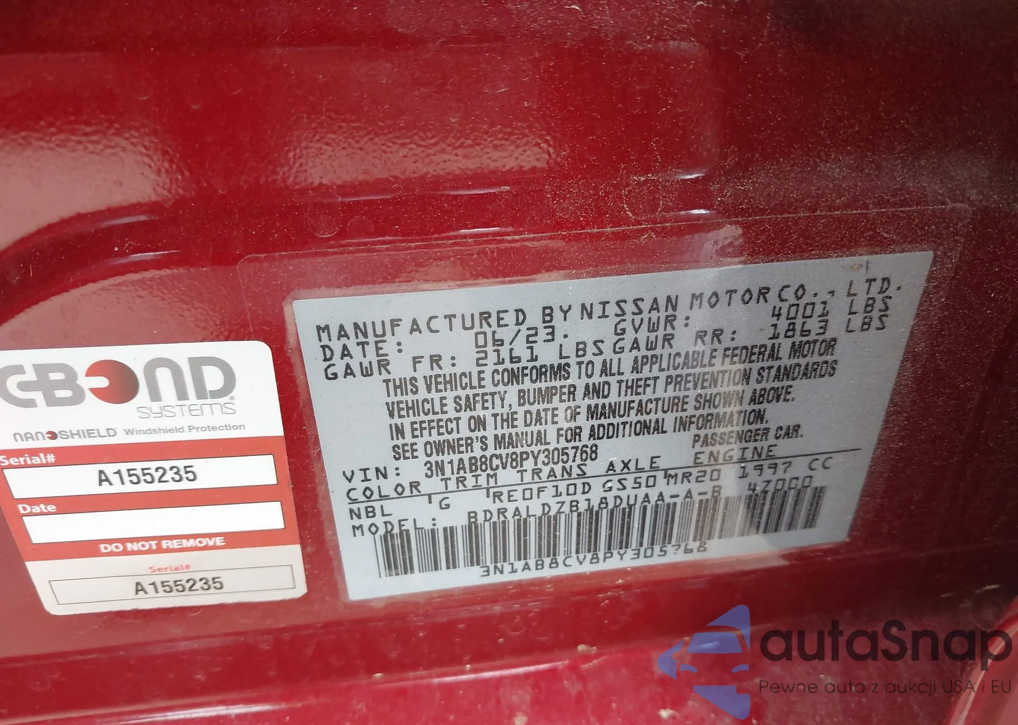 LOT: 41932104 VIN: 3N1AB8CV8PY305768