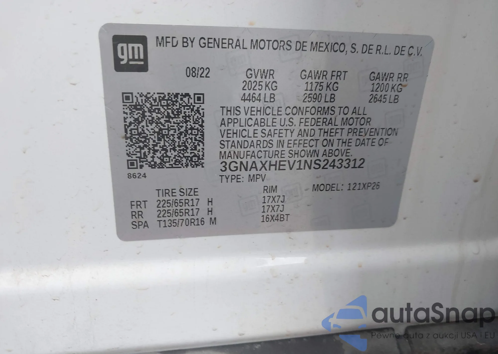 LOT: 41914328 VIN: KL77LKEP2SC118878
