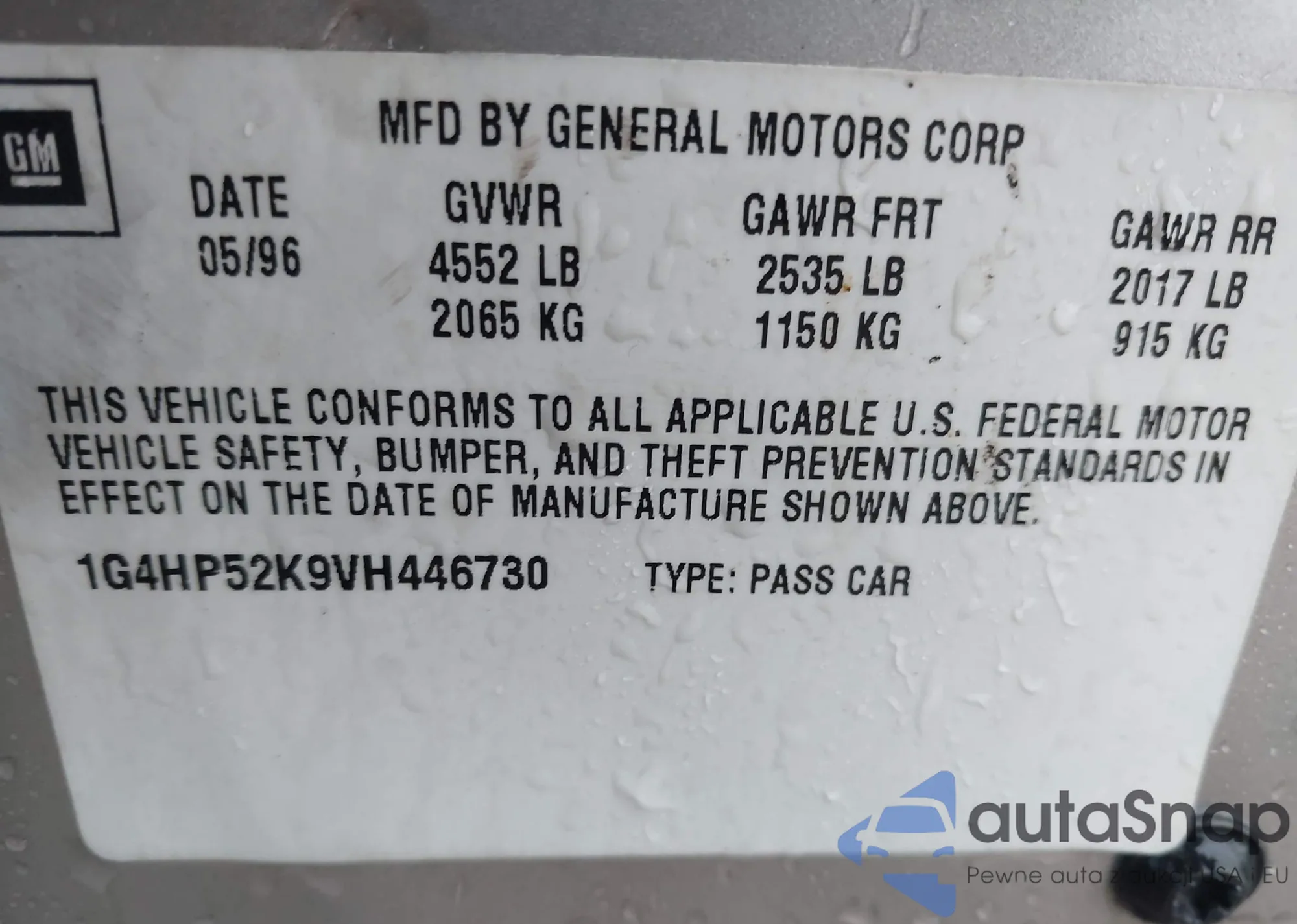 • VIN 1G4HP52K9VH446730