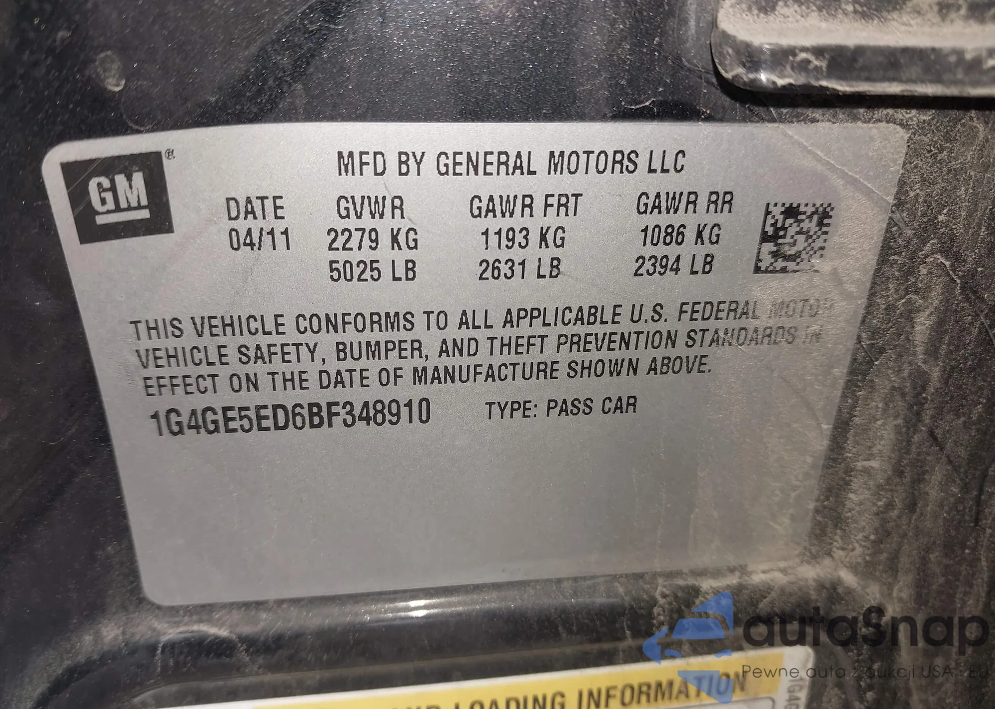 • VIN 1G4GE5ED6BF348910