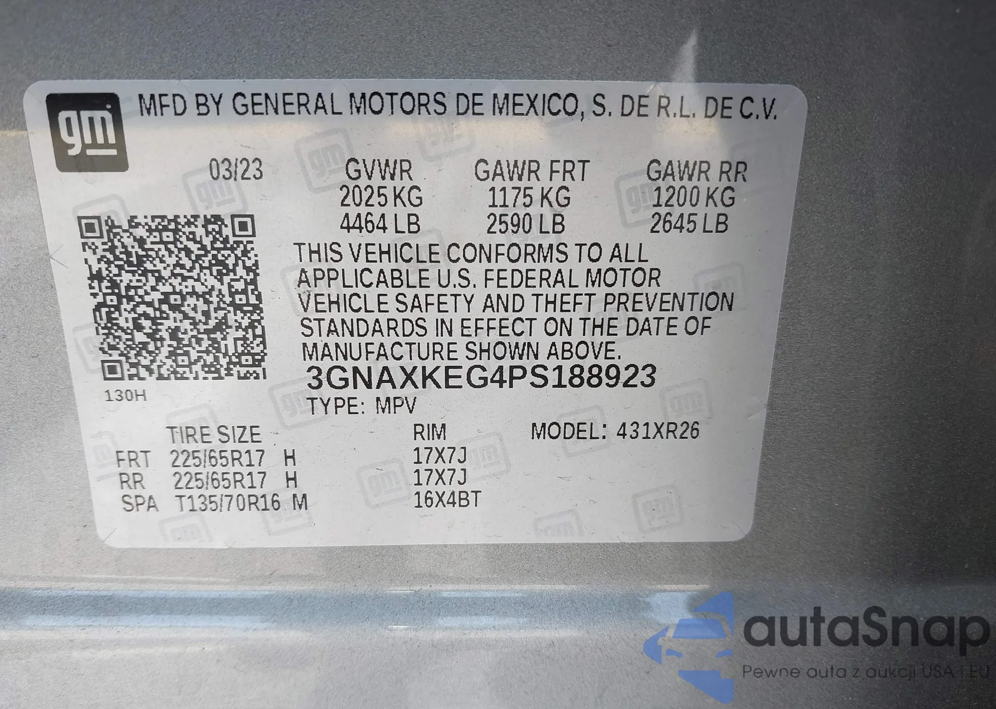 LOT: 42175892 VIN: 3GNAXKEG4PS188923