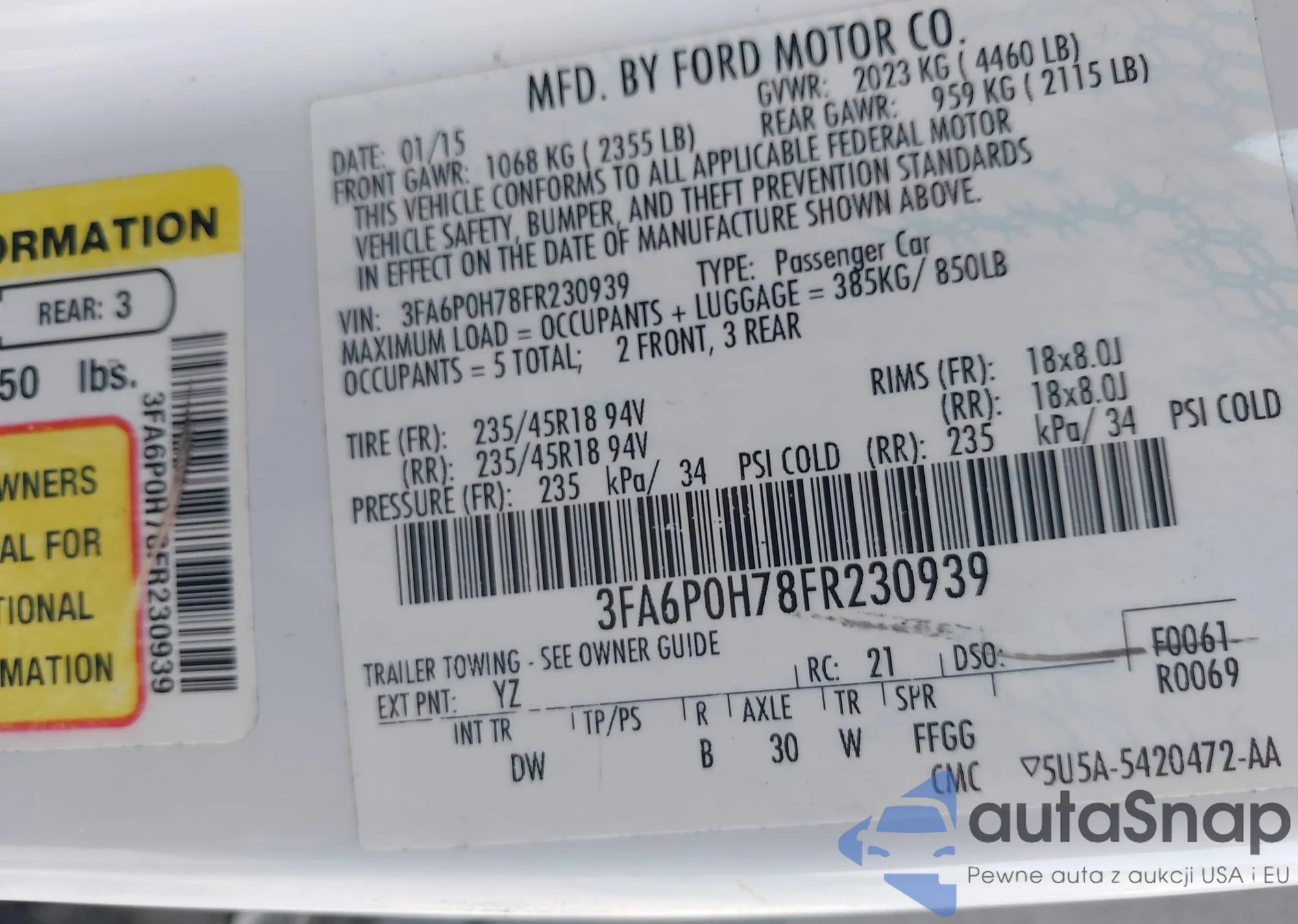 LOT: 42241897 VIN: 2T3BFREV9JW701570