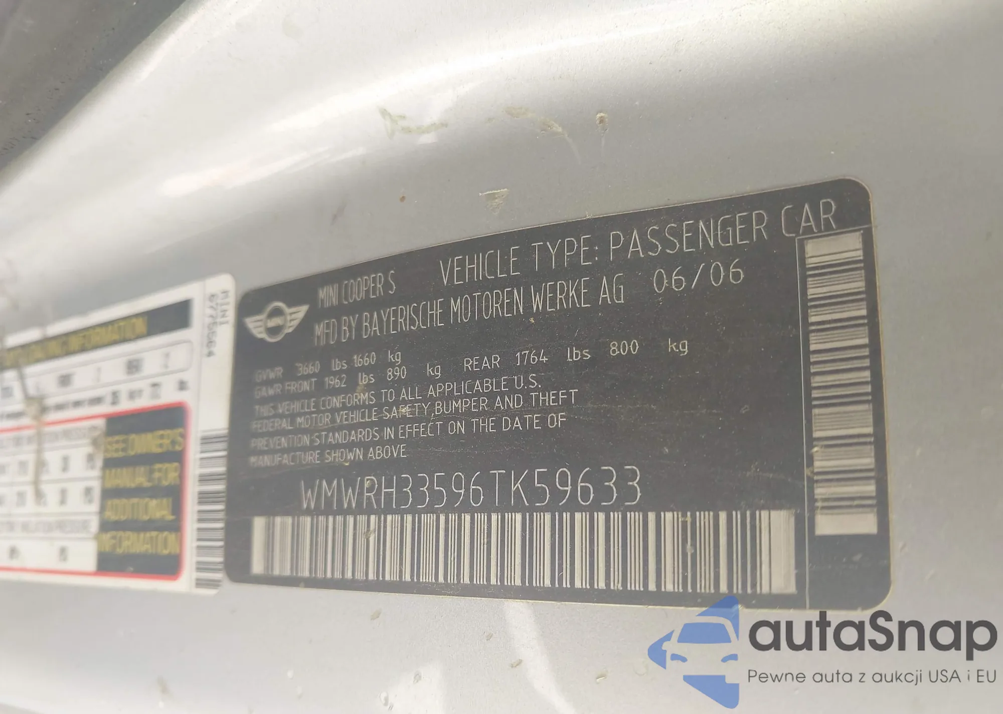 LOT: 42242545 VIN: WMWRH33596TK59633