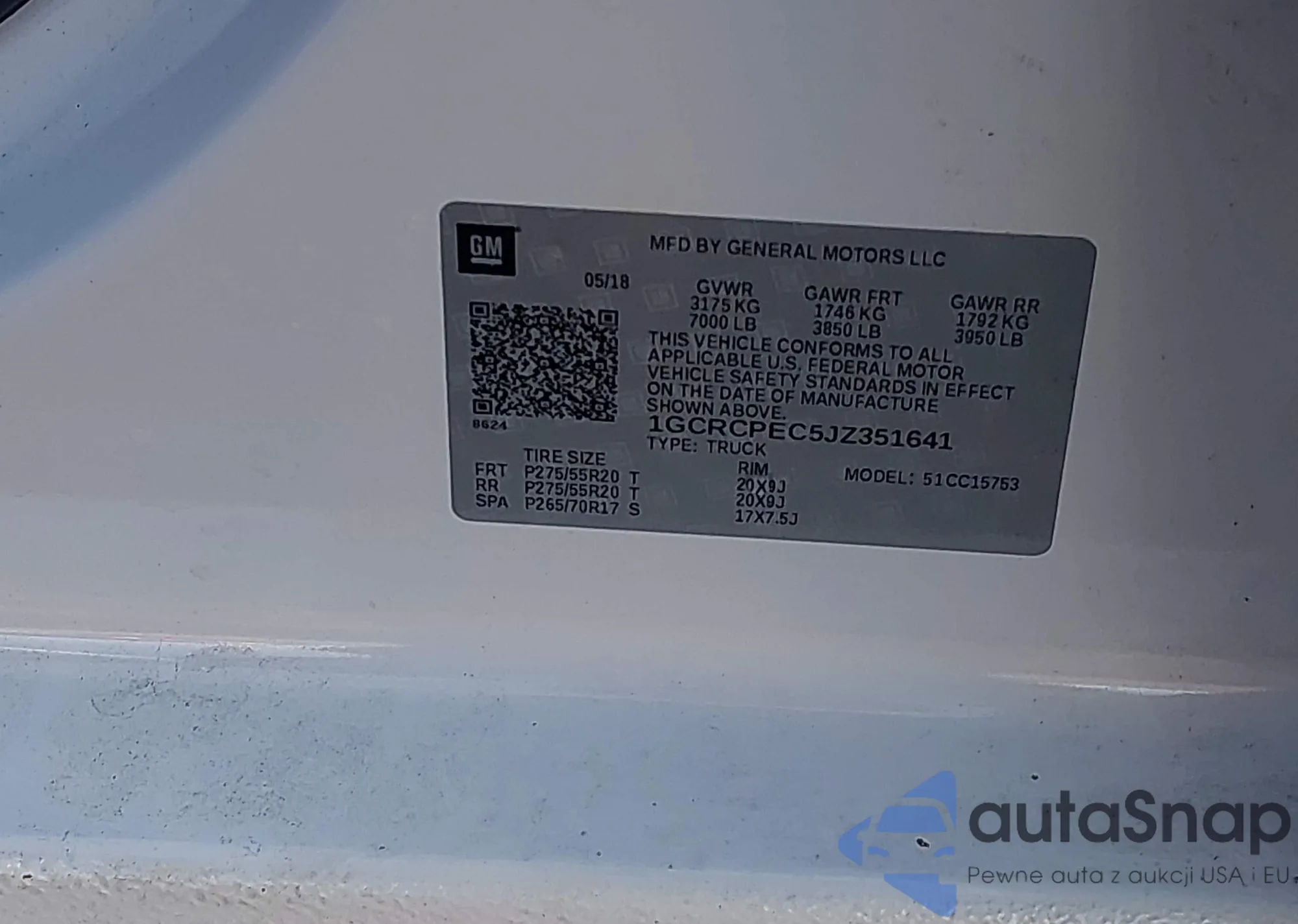 • VIN 1GCRCPEC5JZ351641