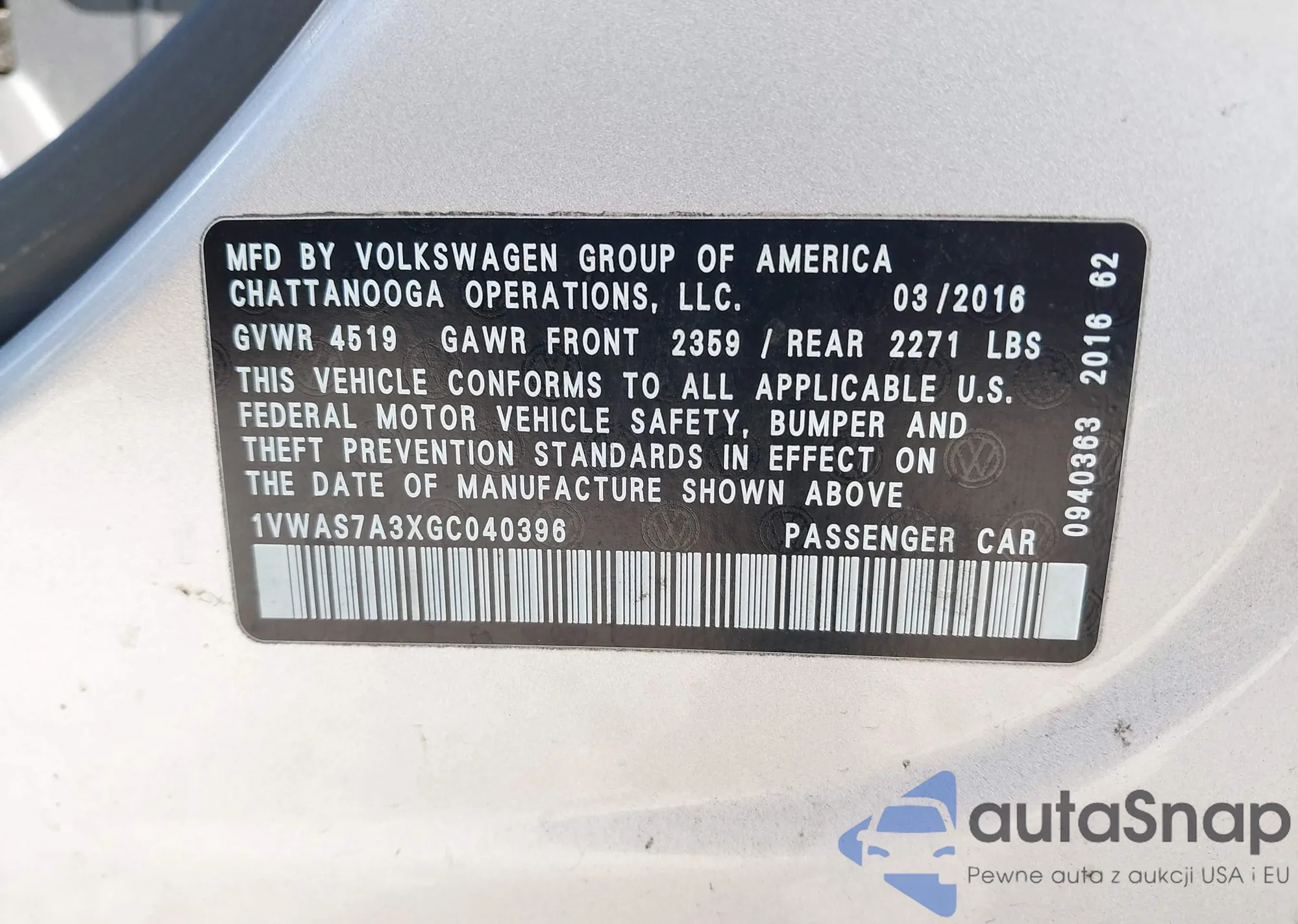 • VIN 1VWAS7A3XGC040396
