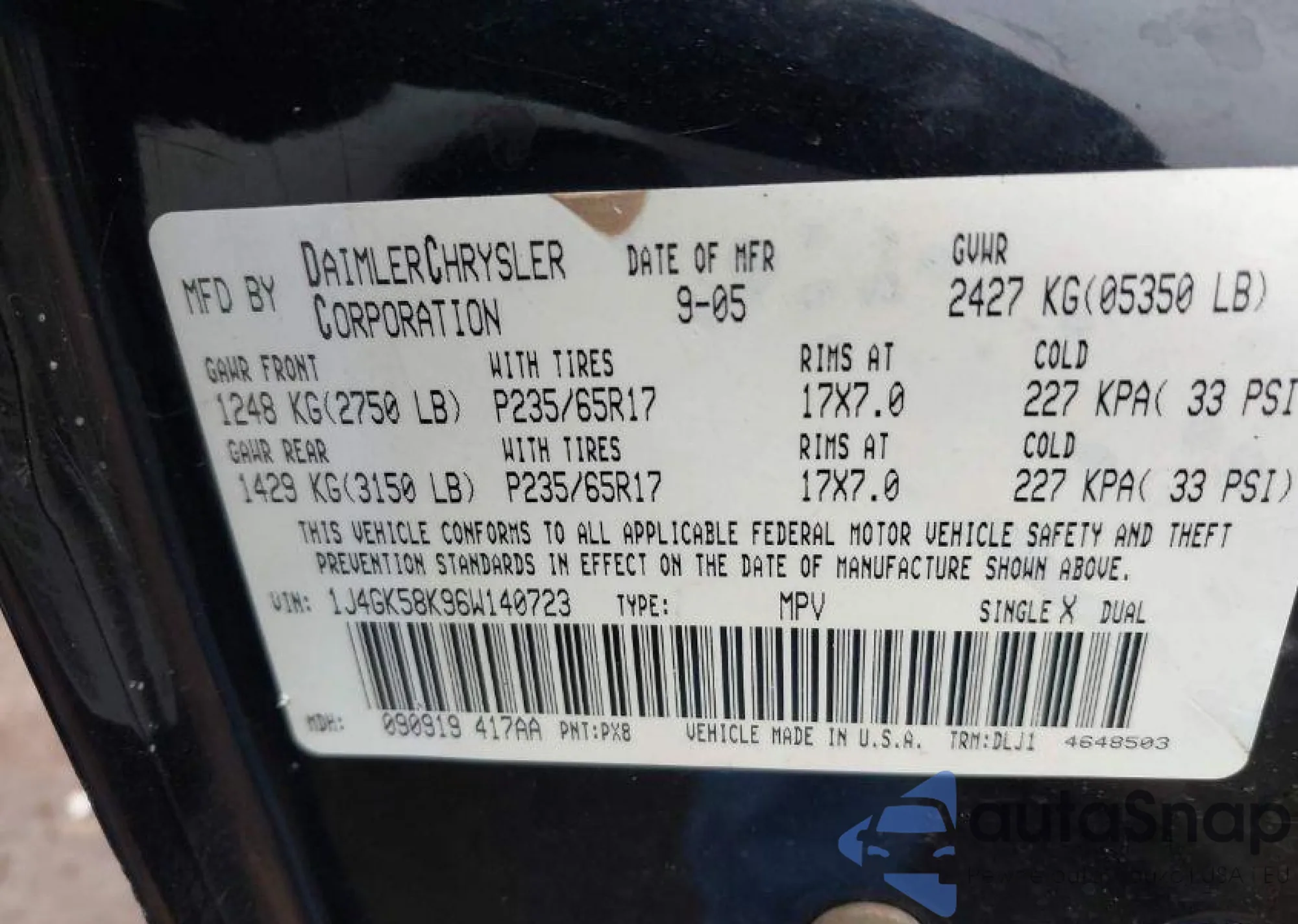 LOT: 40432819 VIN: 1J4GK58K96W140723