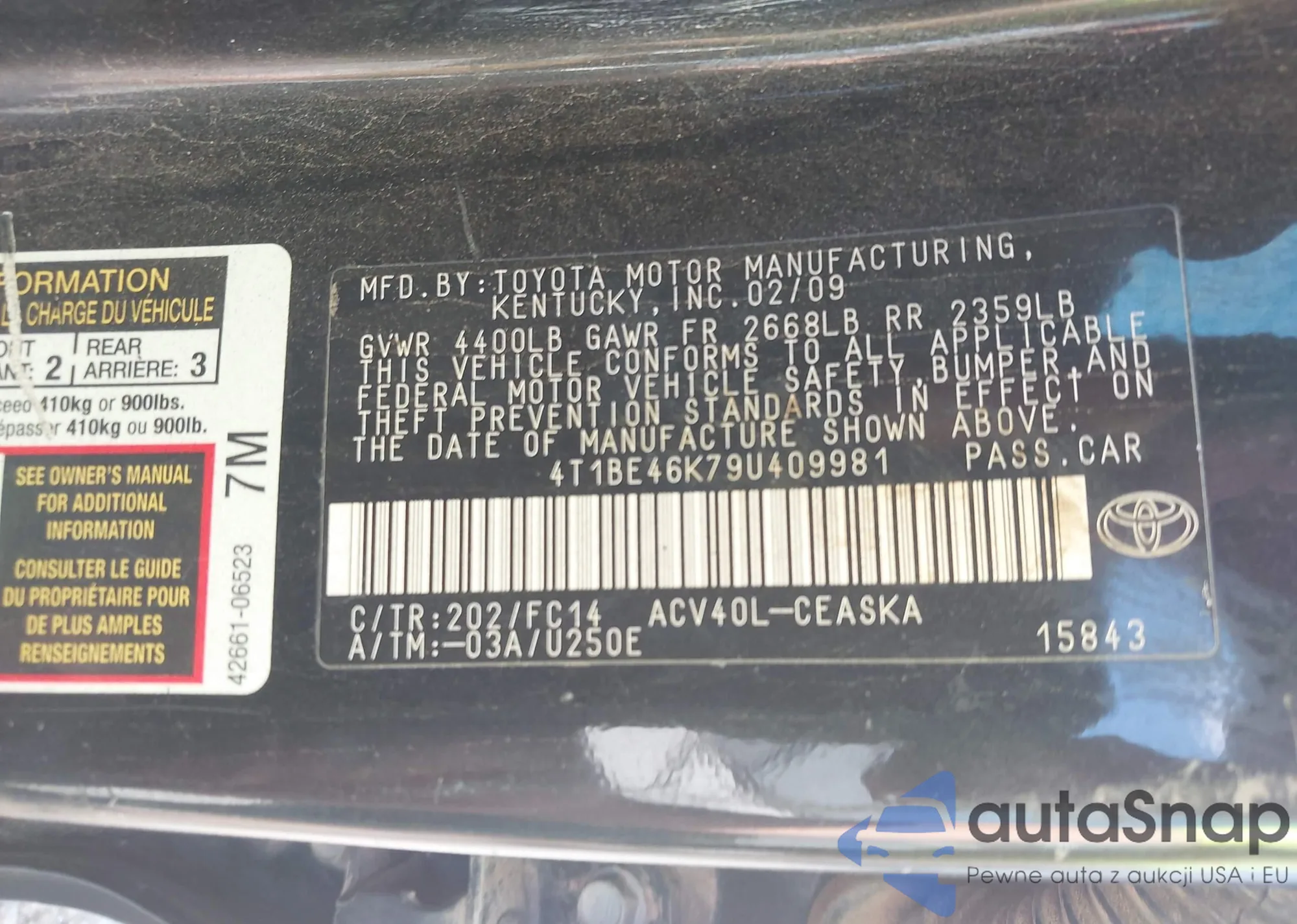 • VIN 4T1BE46K79U409981