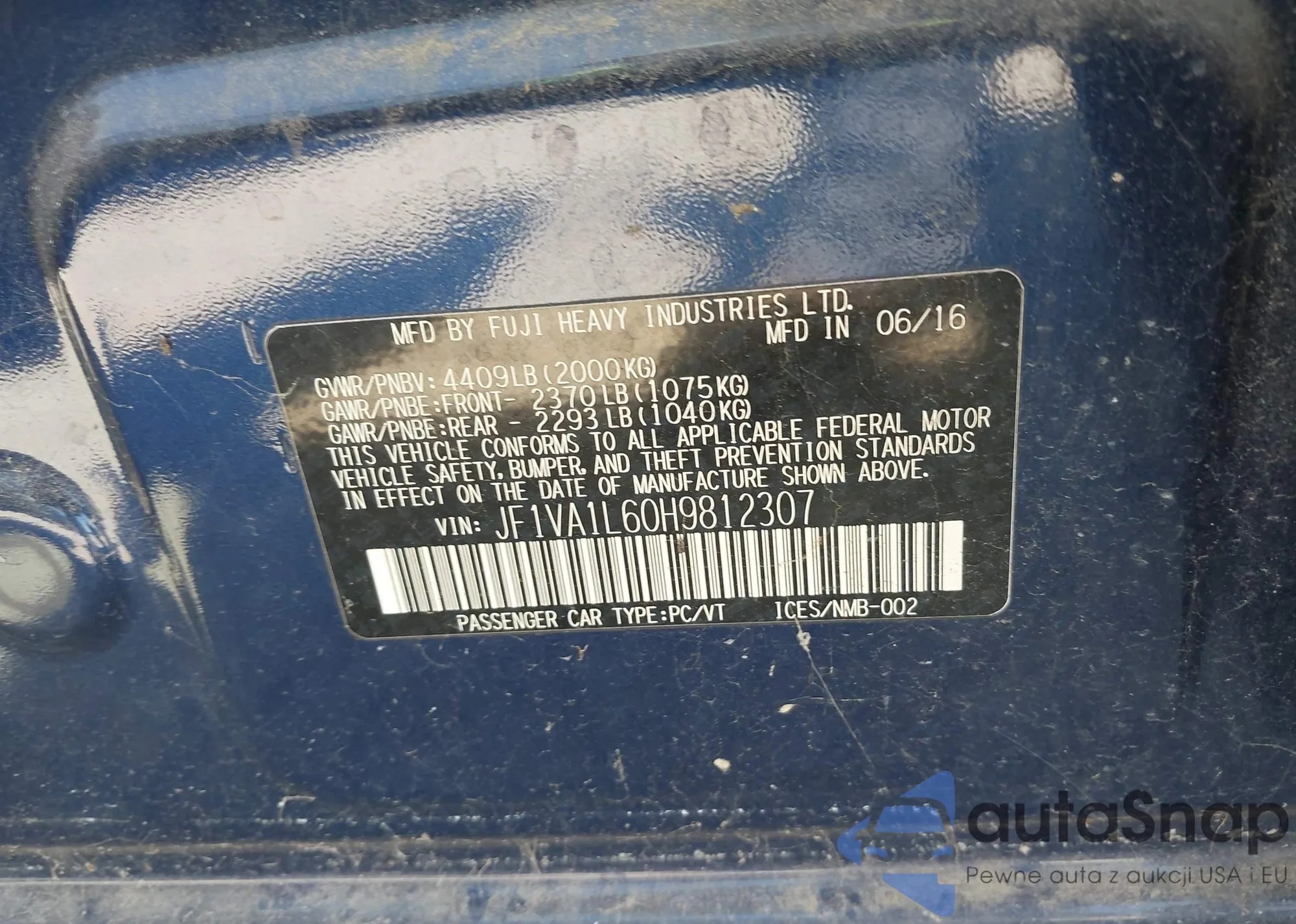 LOT: 39415229 VIN: 1VWAS7A3XGC040396