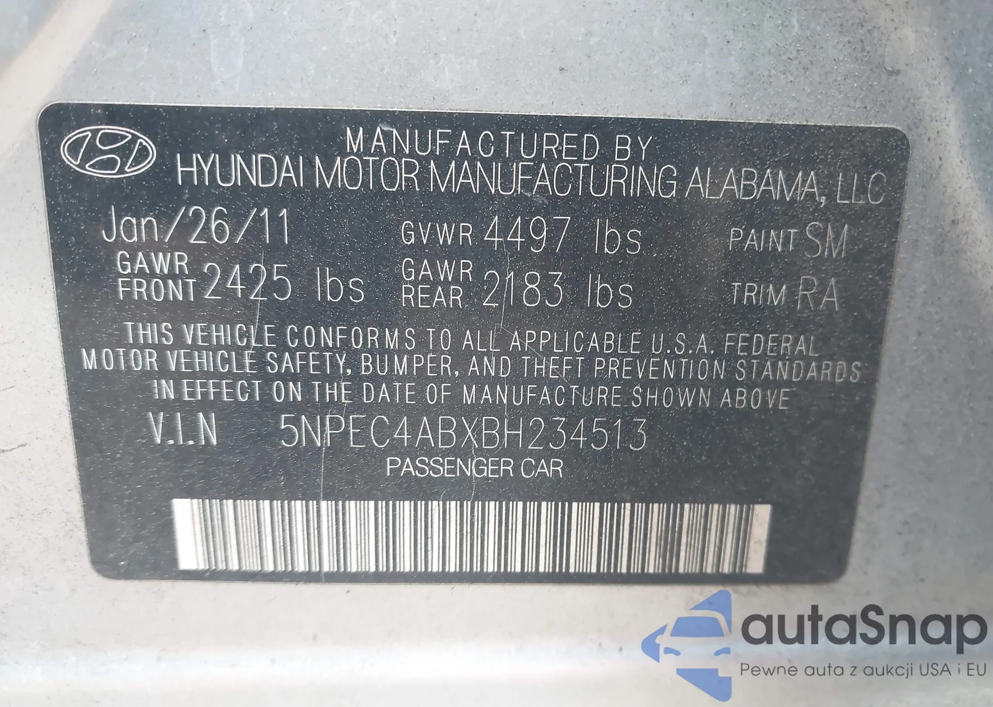 • VIN 5NPEC4ABXBH234513
