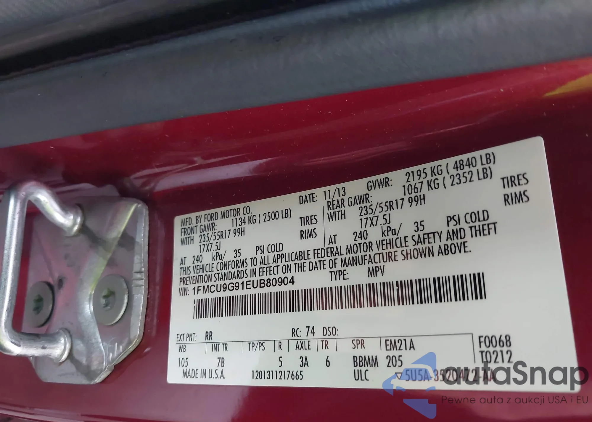 LOT: 42143430 VIN: 1FMCU9G91EUB80904