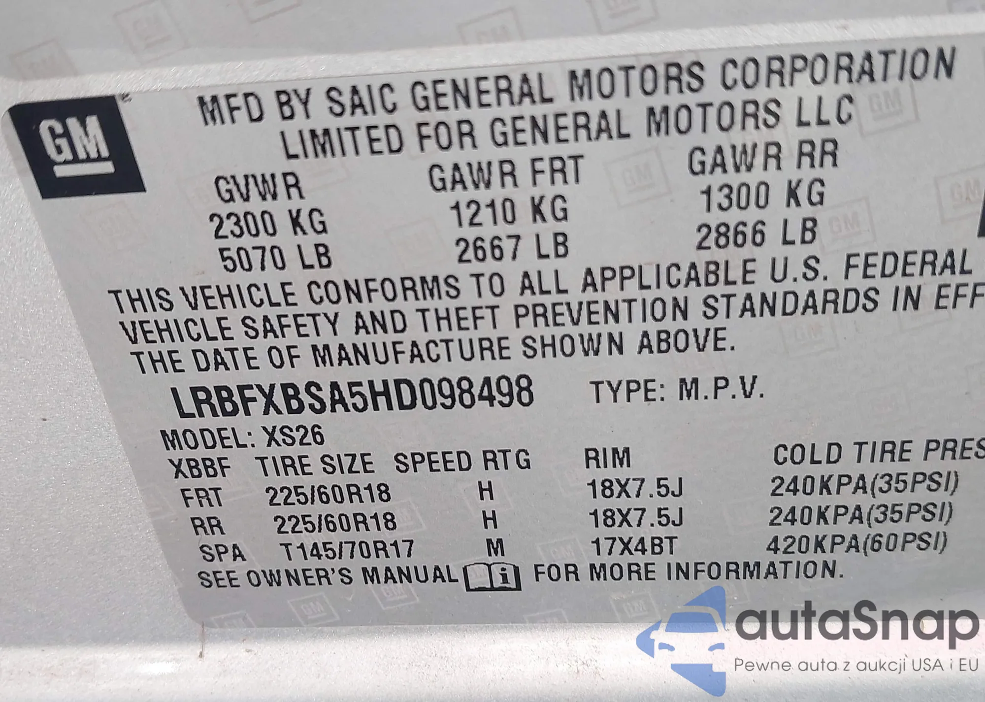 • VIN LRBFXBSA5HD098498