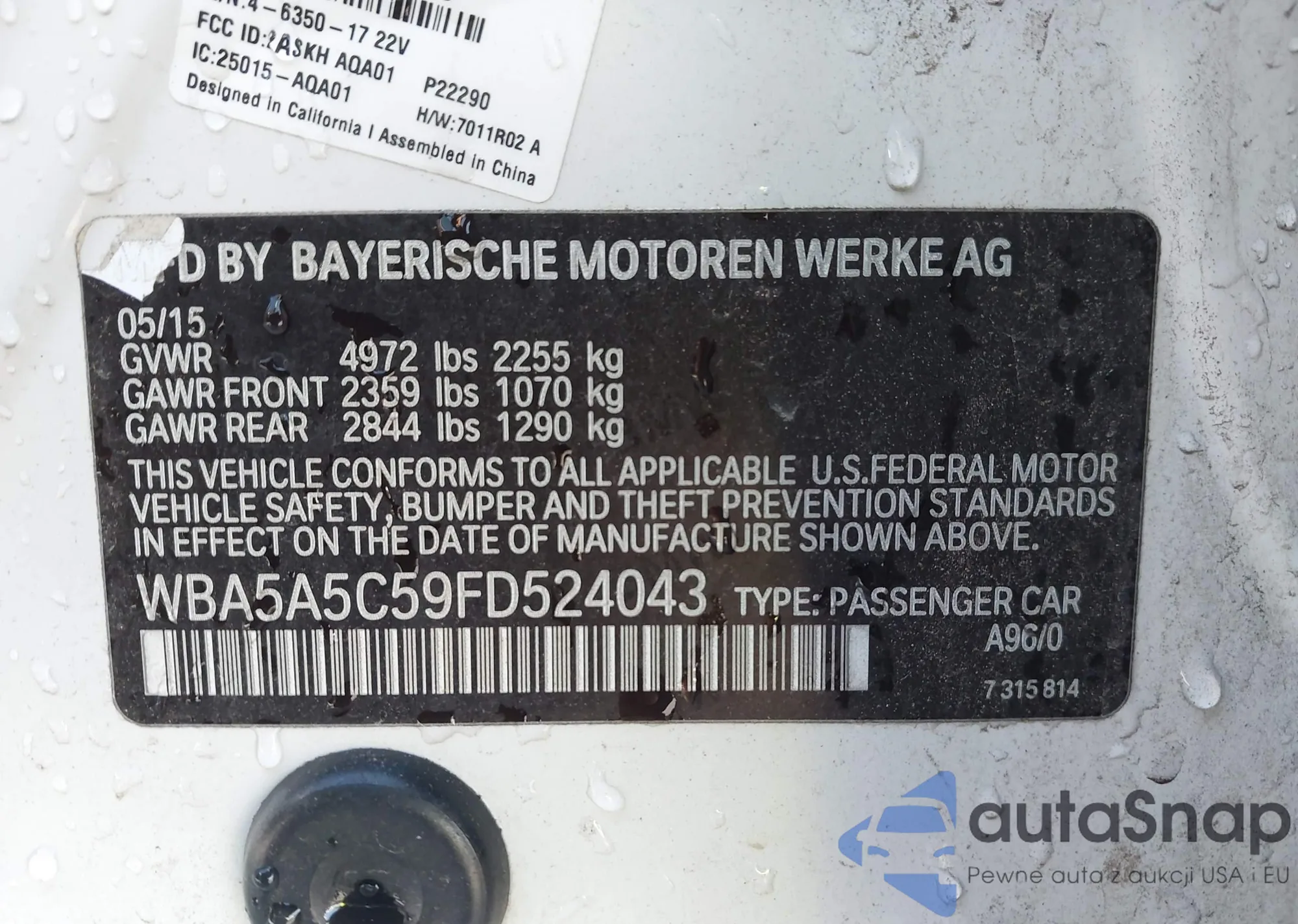 LOT: 42023892 VIN: WBA5A5C59FD524043