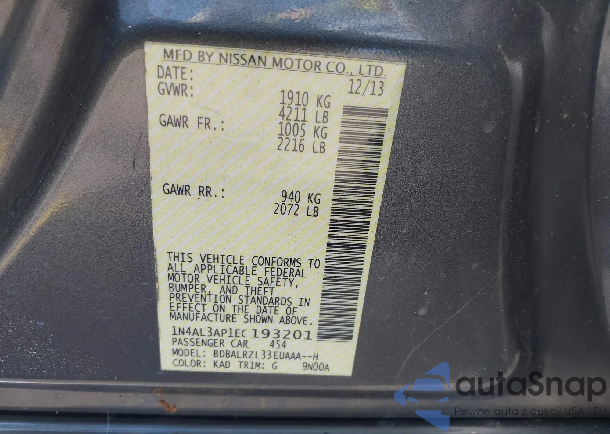 LOT: 42030882 VIN: 1N4AL3AP1EN239209