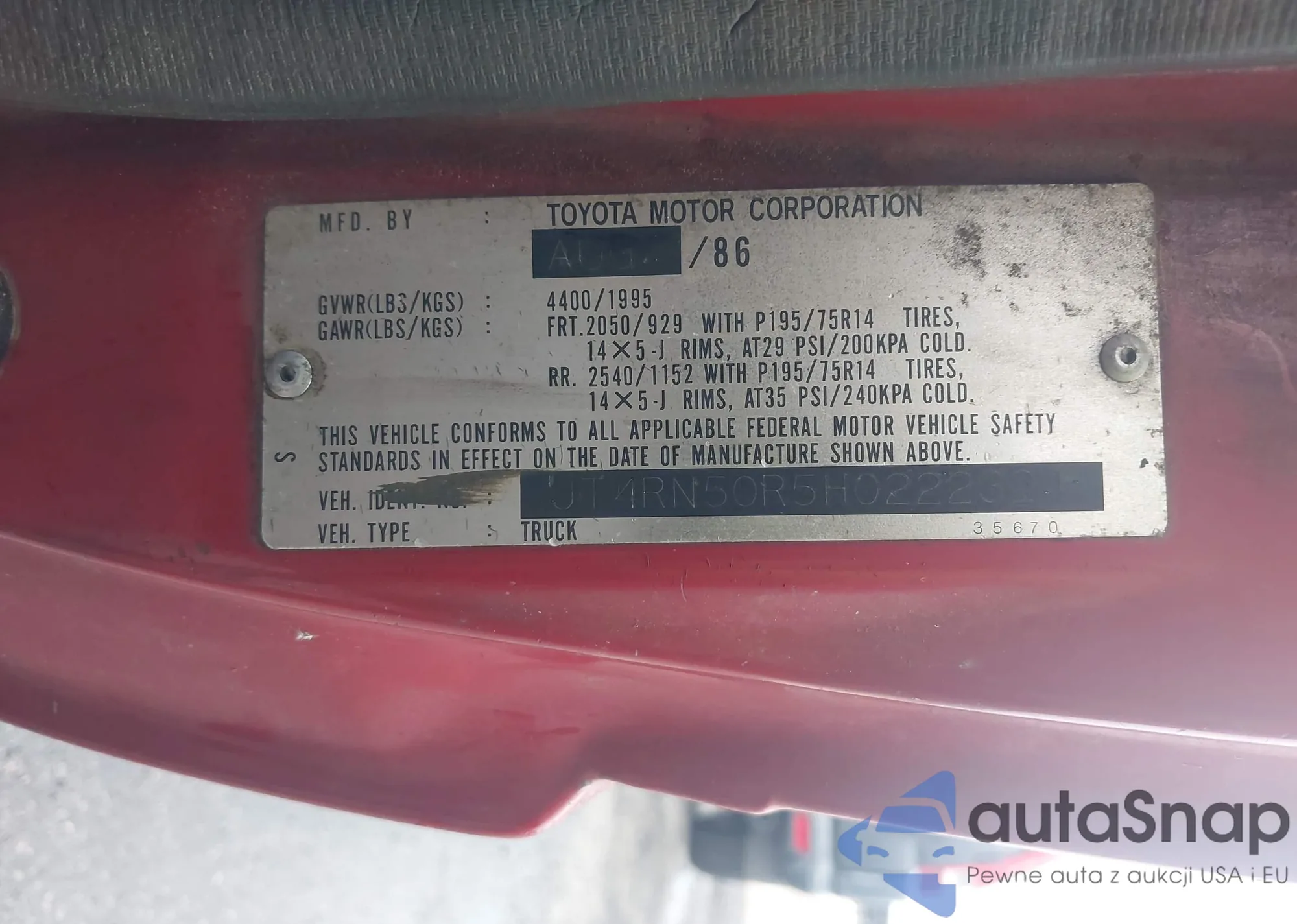 • VIN JT4RN50R5H0222324