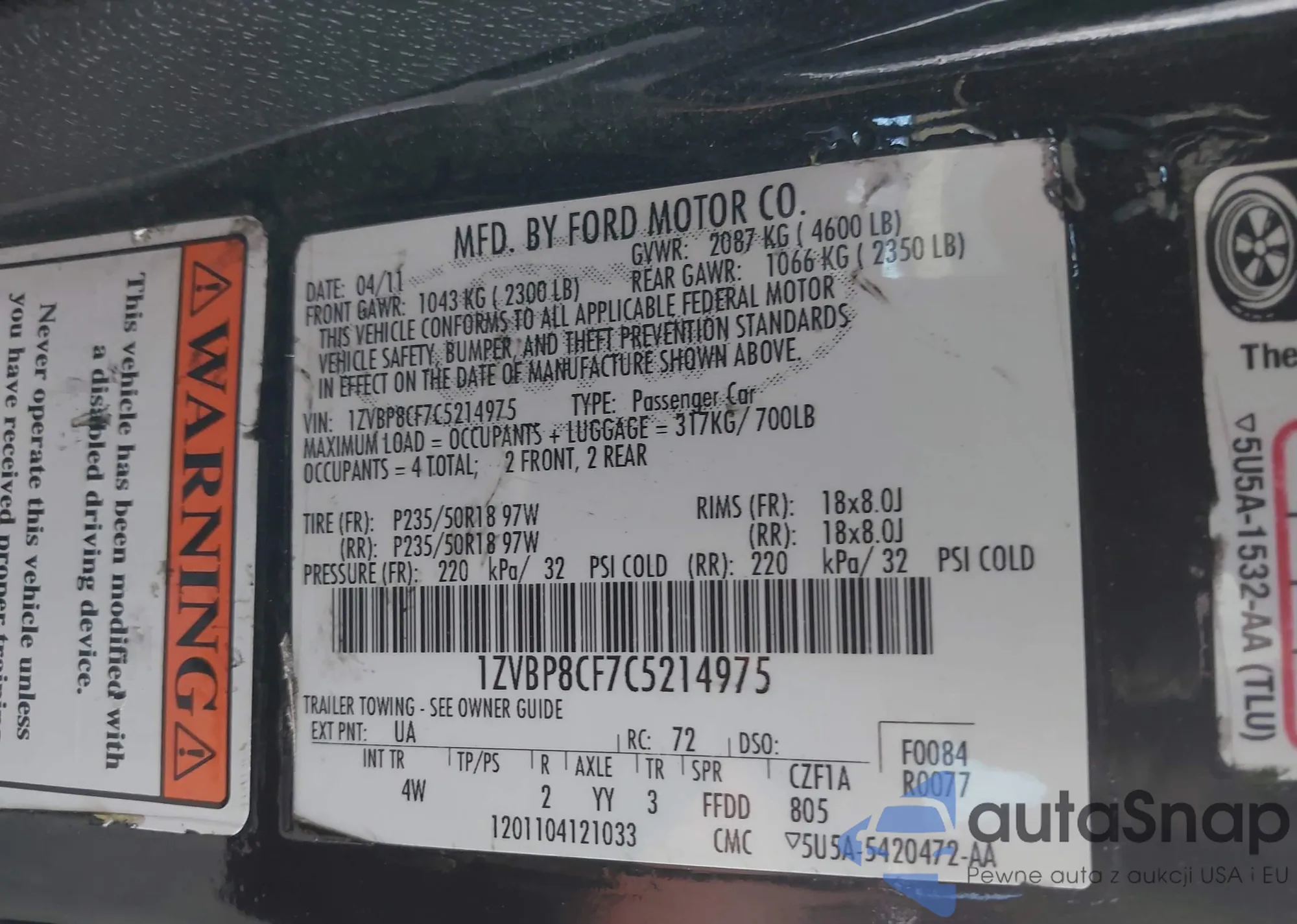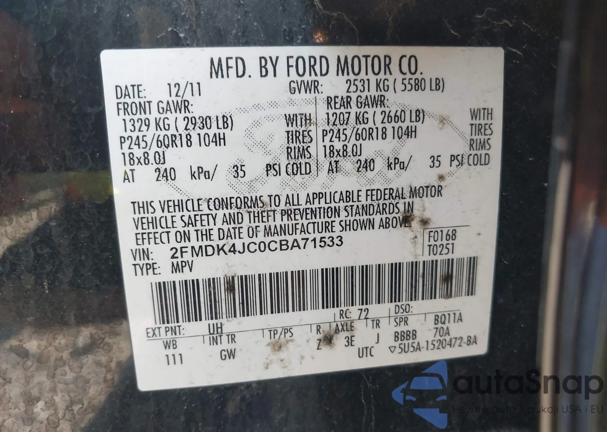 • VIN 2FMDK4JC0CBA71533
