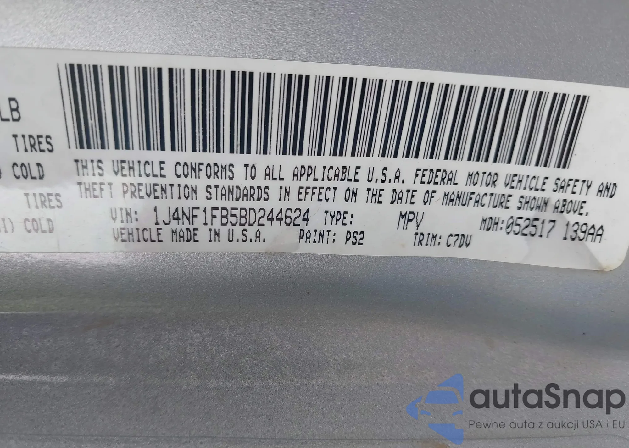 • VIN 1J4NF1FB5BD244624