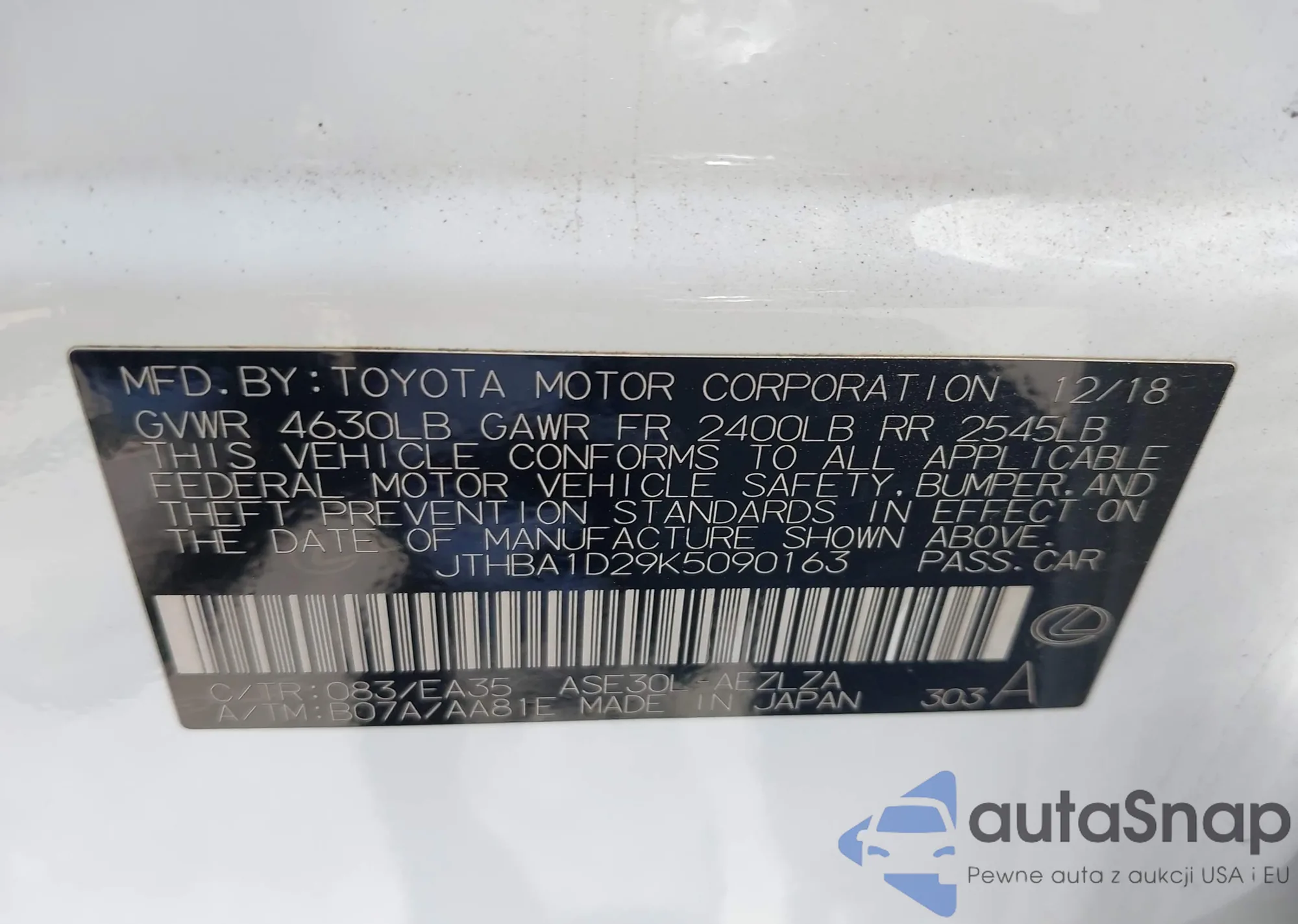 LOT: 42110494 VIN: JTEHD21A330024738