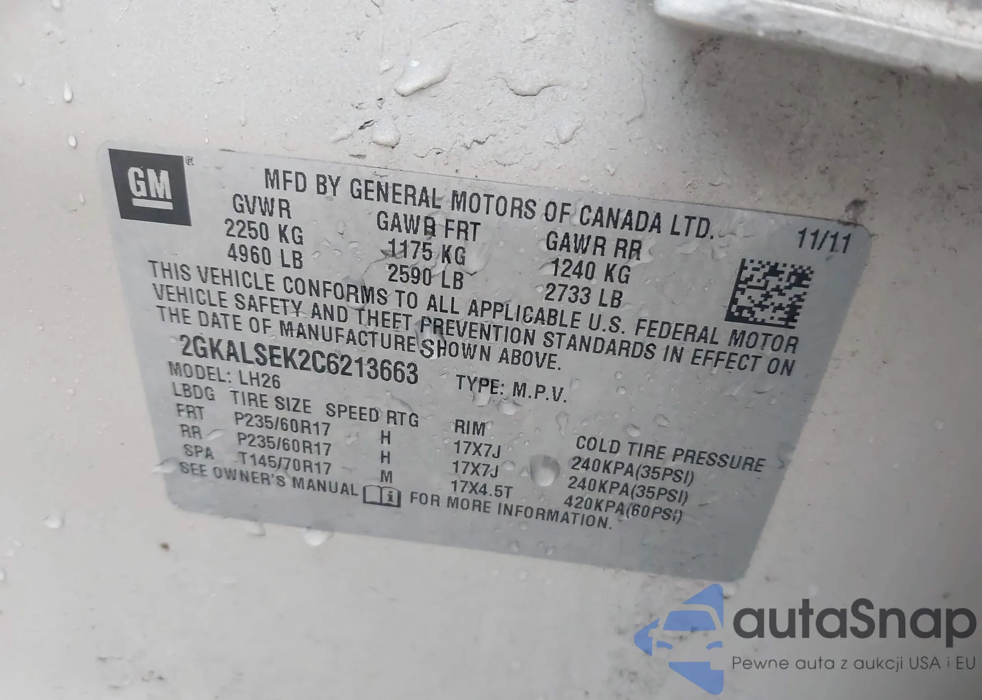 LOT: 42105221 VIN: 1G1ZF57559F189526