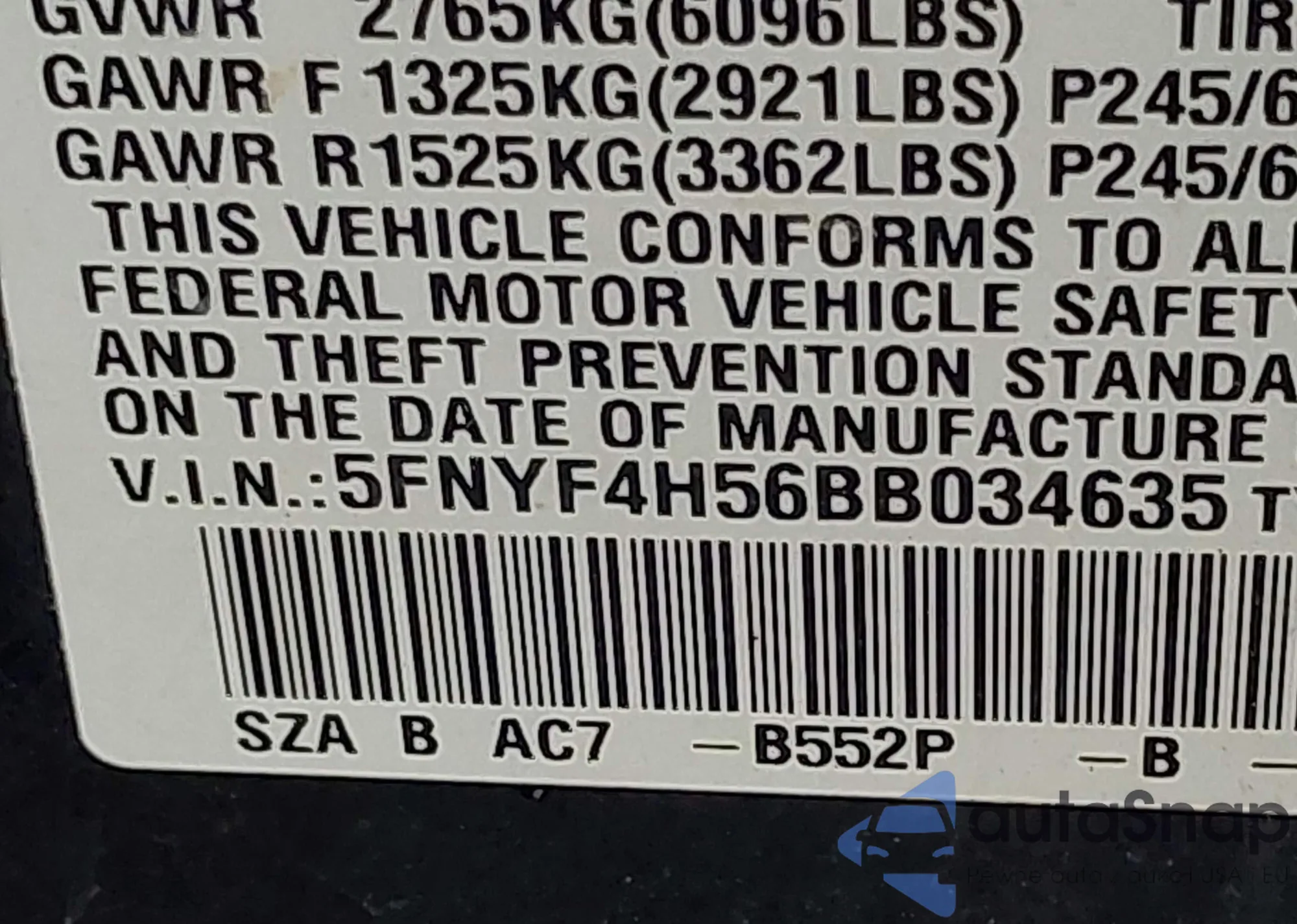 • VIN 1FTKR1EE8BPB04948