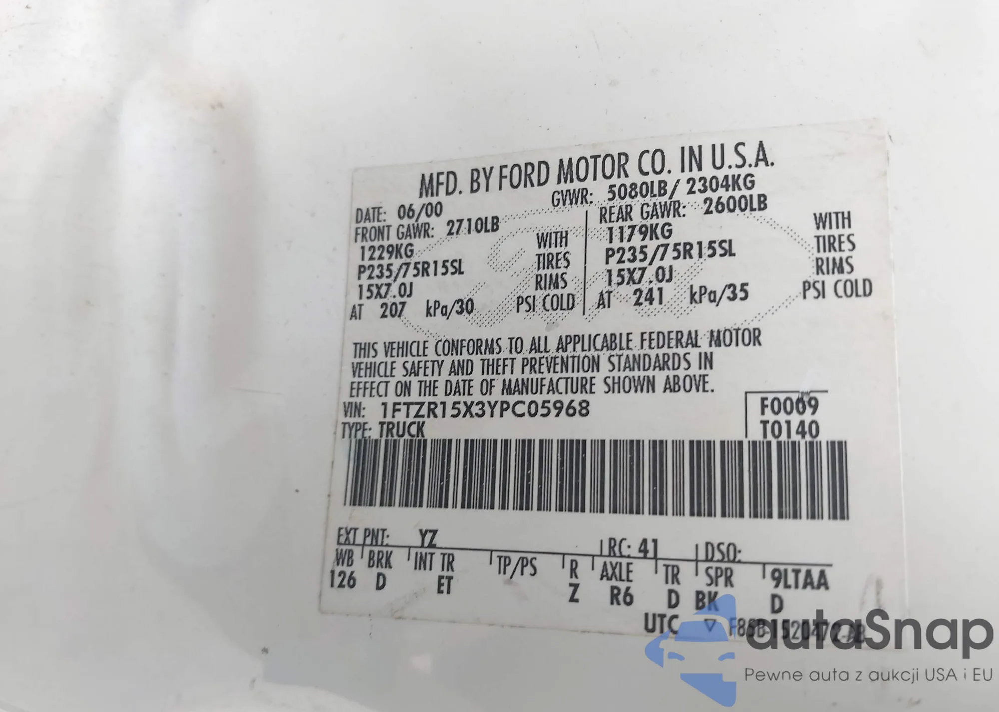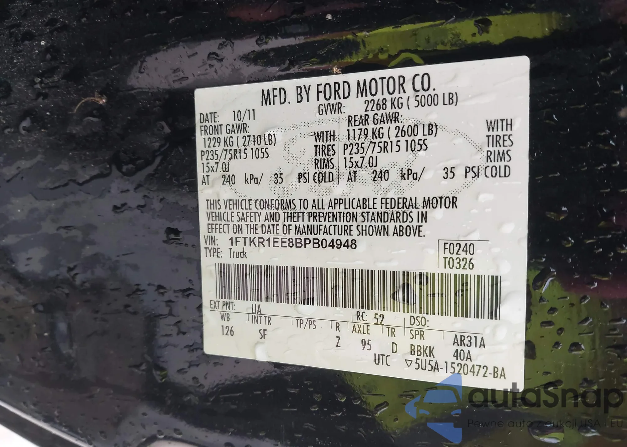 LOT: 42180432 VIN: 1FTKR1EE8BPB04948