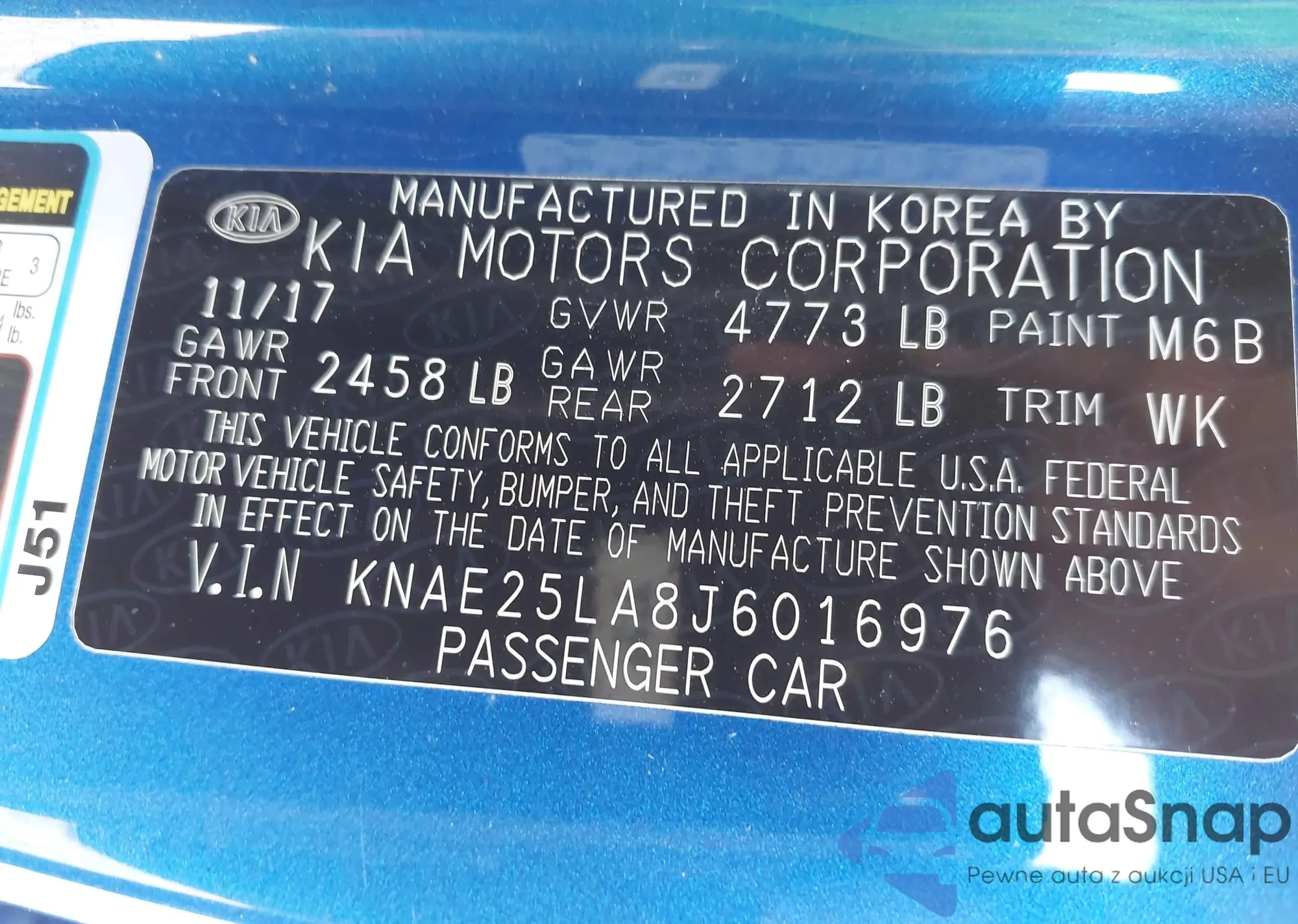 • VIN KNAE25LA8J6016976