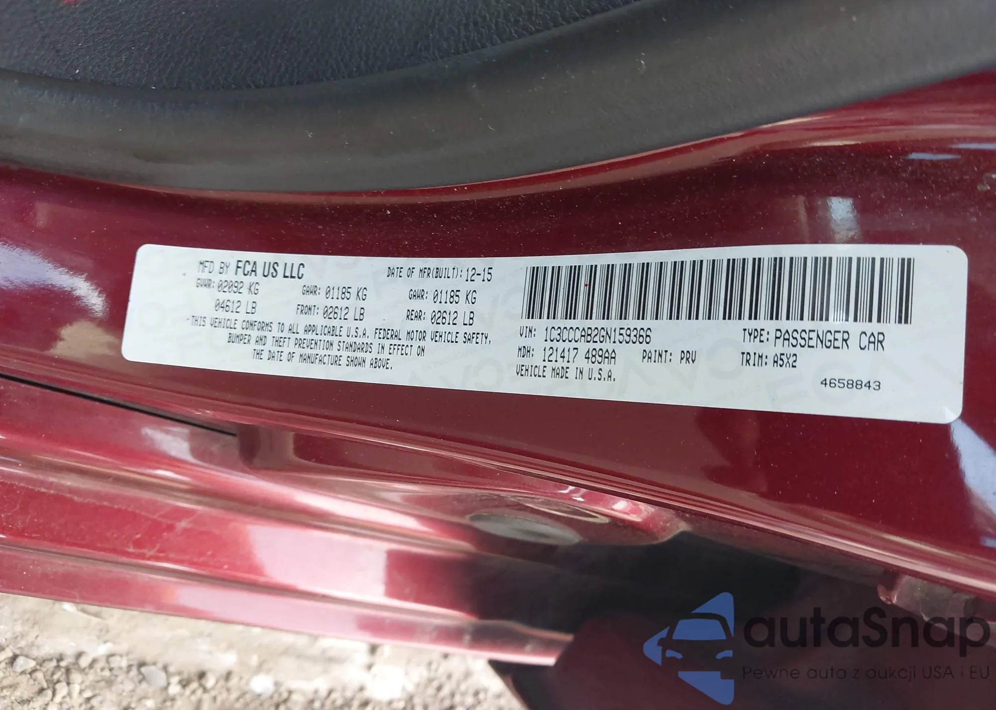 LOT: 42190387 VIN: 1C3CCCAB2GN159366