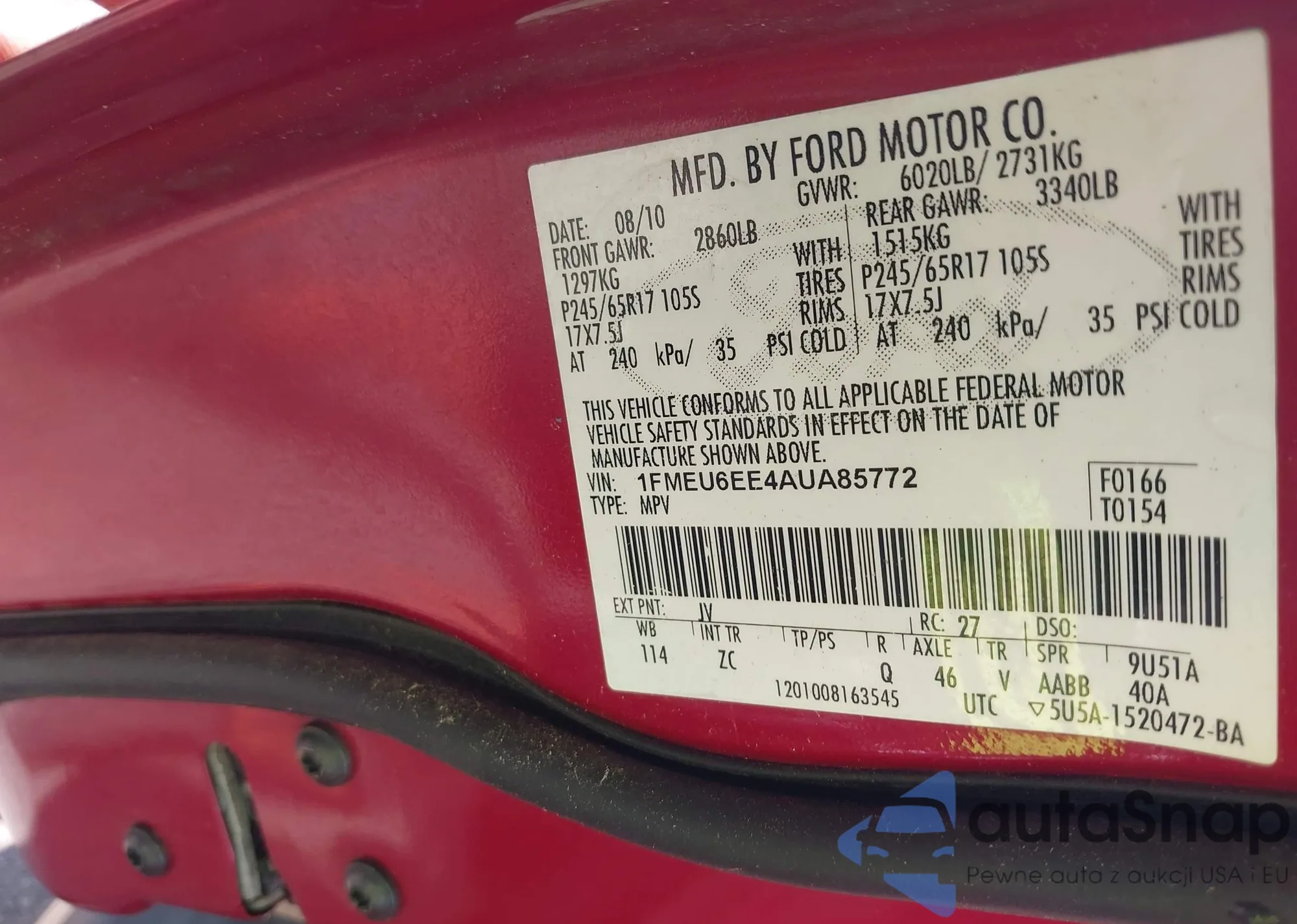 LOT: 42202006 VIN: 3FAHP0HA9AR172238