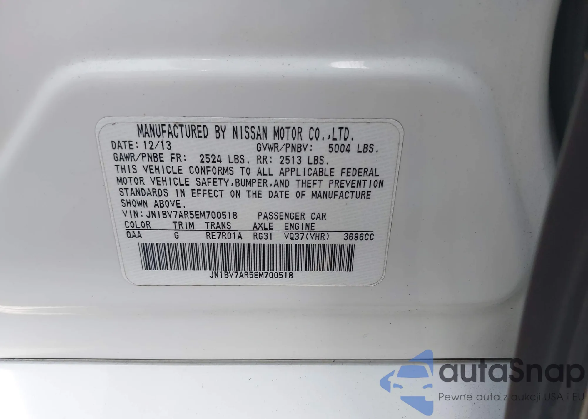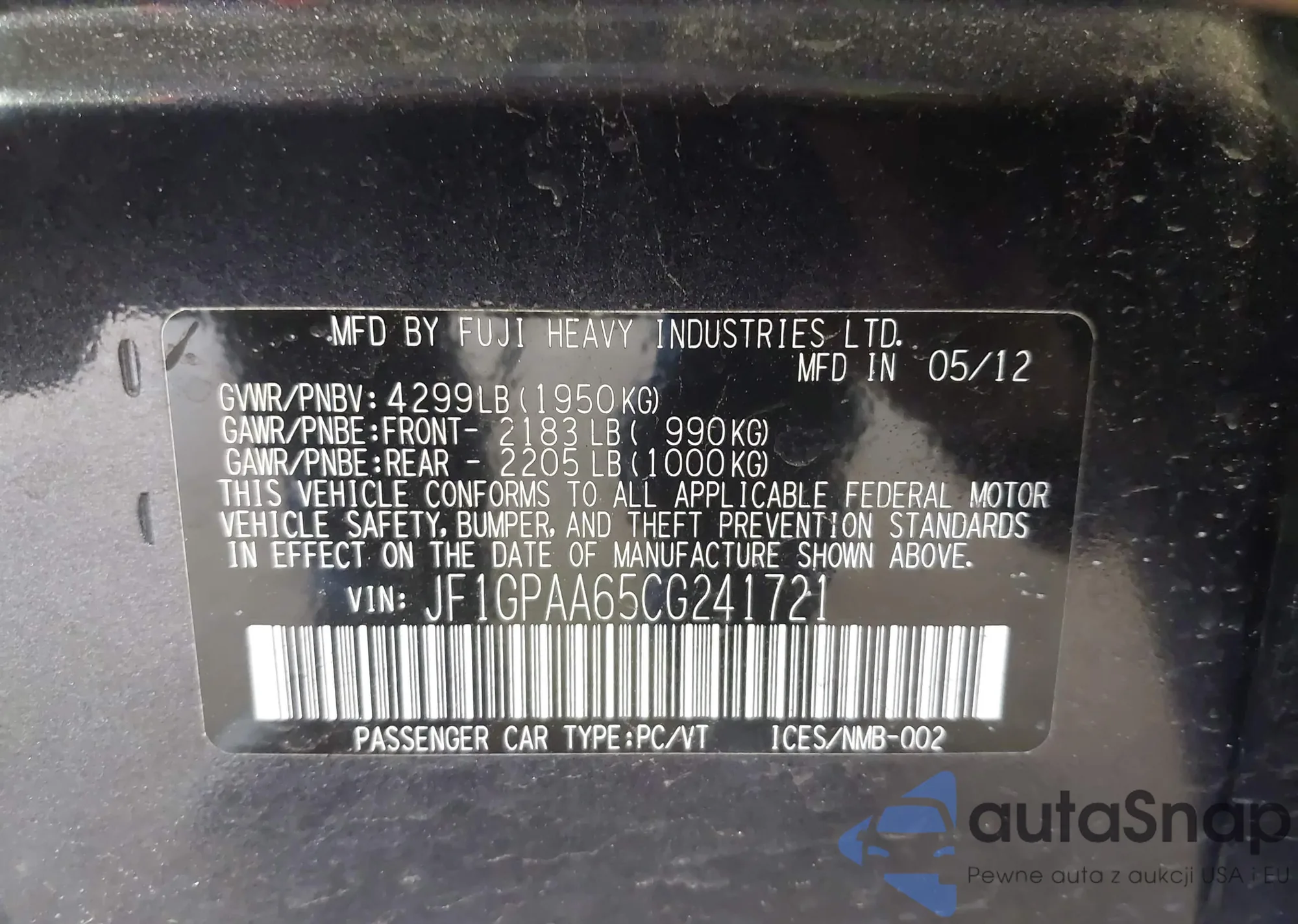 LOT: 42076429 VIN: JF1GPAA65CG241721