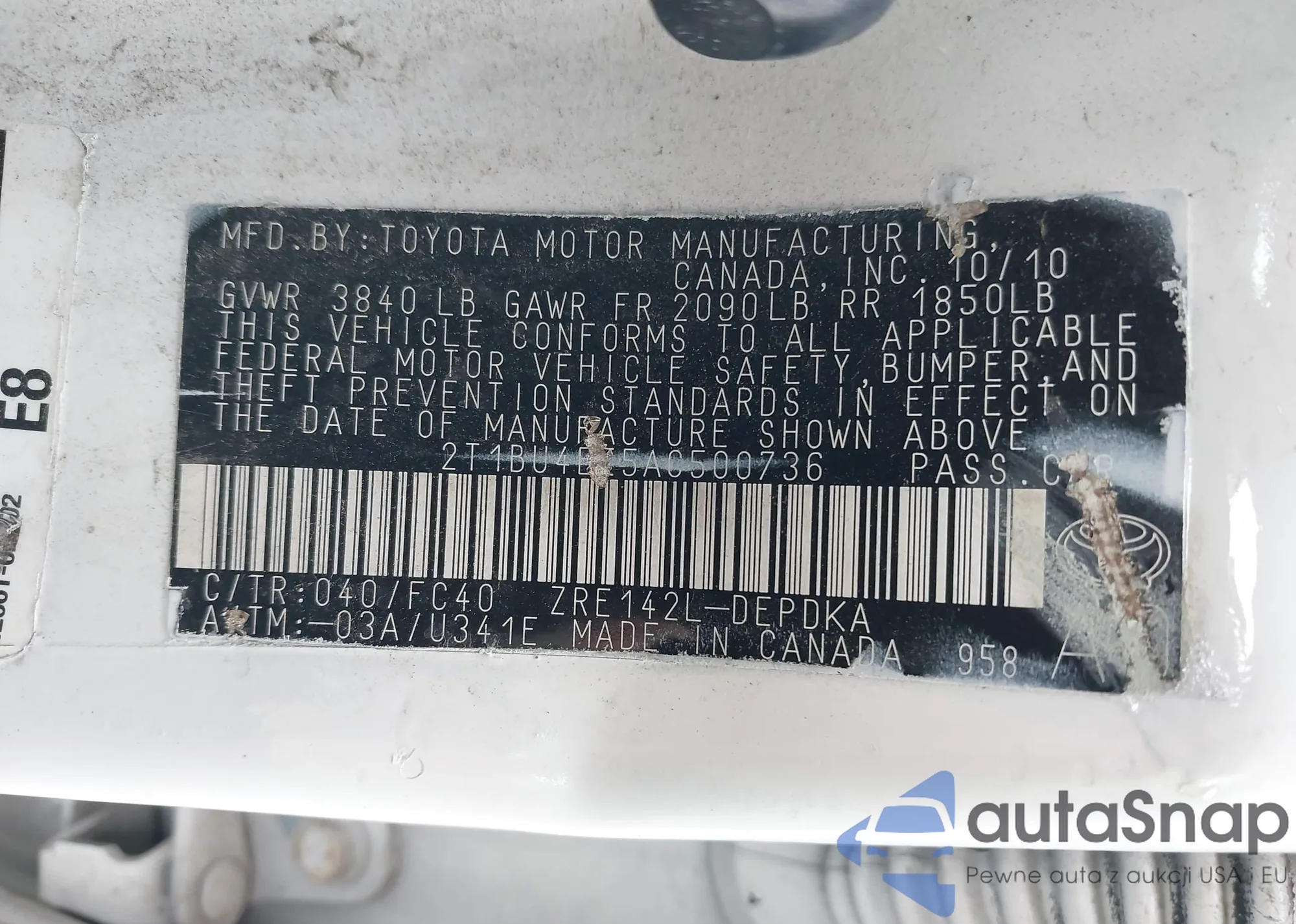 • VIN 2T1BU4EE5AC500736